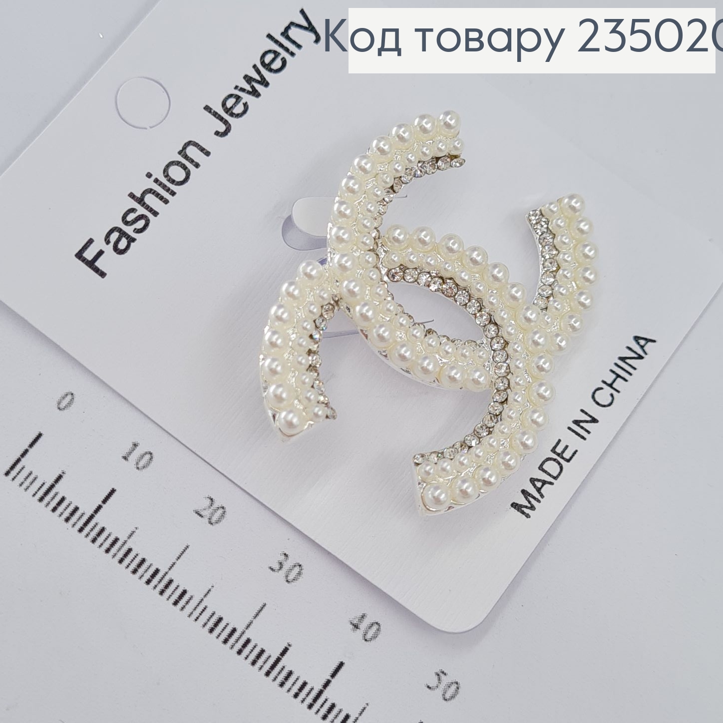 Брошь металл серебряна Шанель с камнями и жемчугом