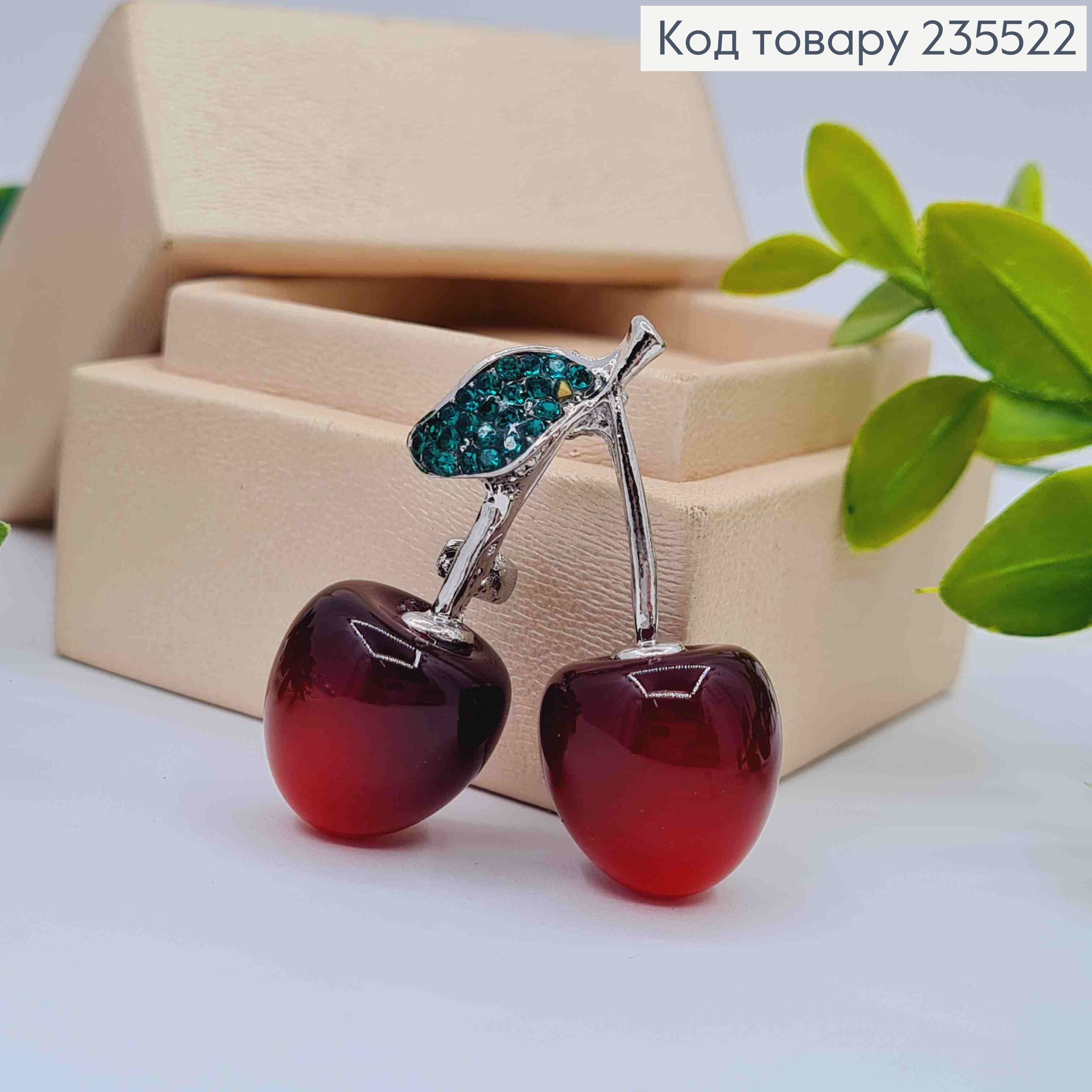 Брошь металл "Вишенки-Черешеньки" украшена камешками, 4*3см, Золотого цвета. 235521 фото