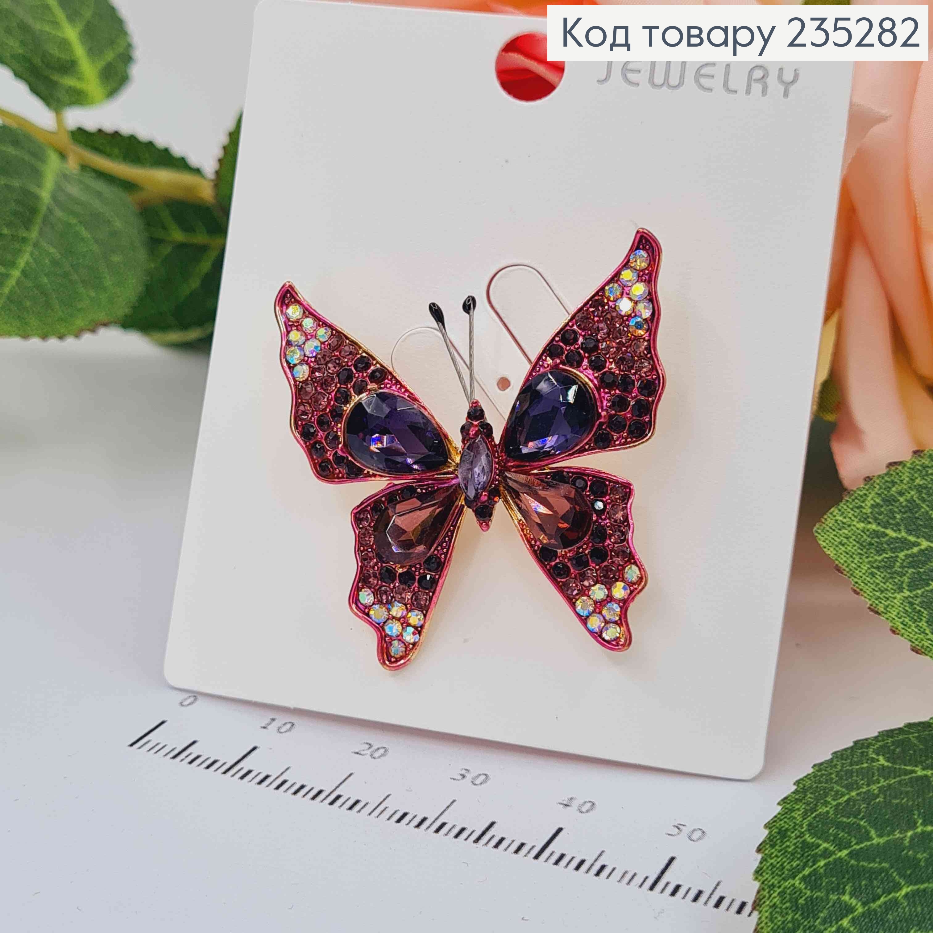 Брошь Бабочка с камешками цвета ФУКСИЯ 4*4см