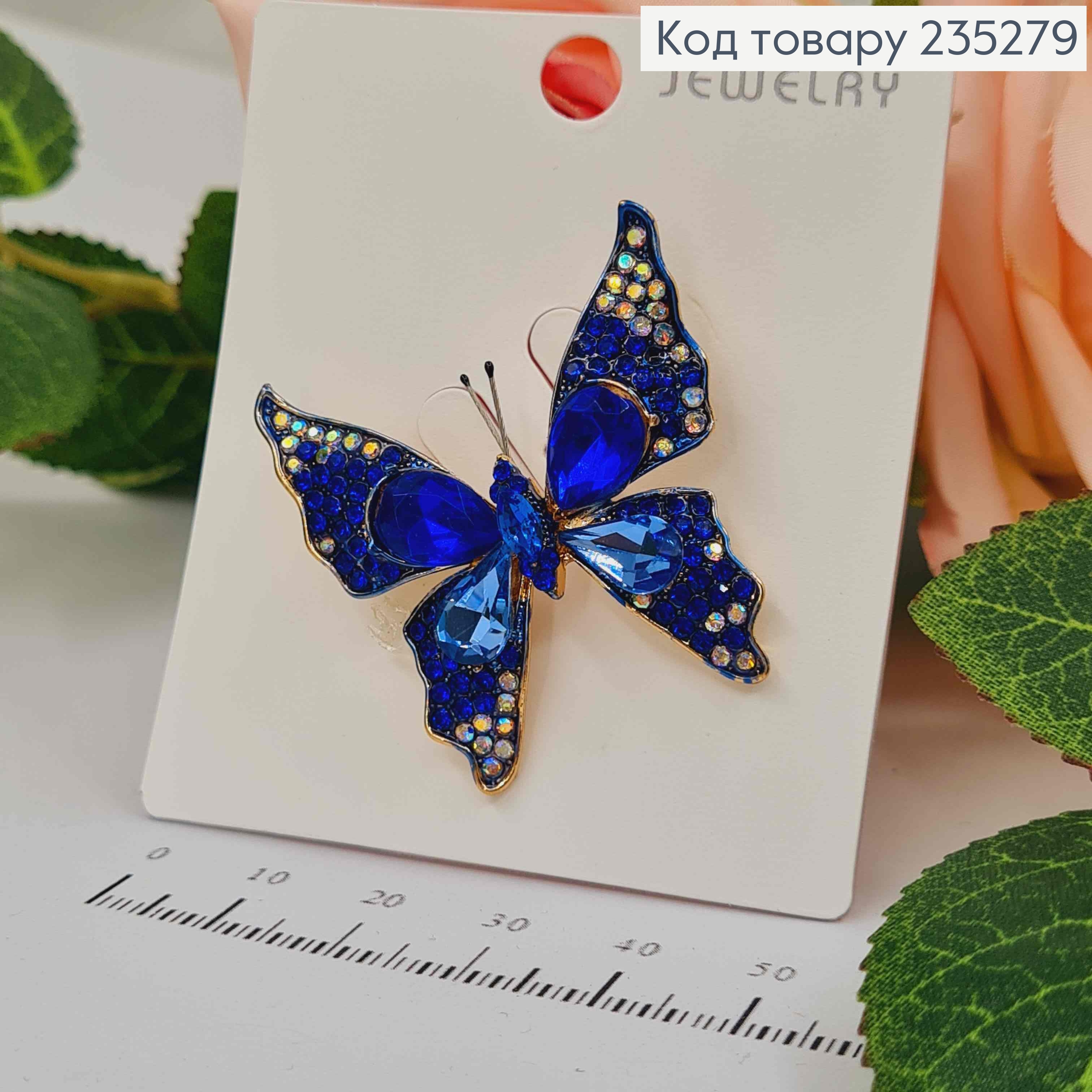 Брошь Бабочка с камешками СИНЕГО цвета 4*4см