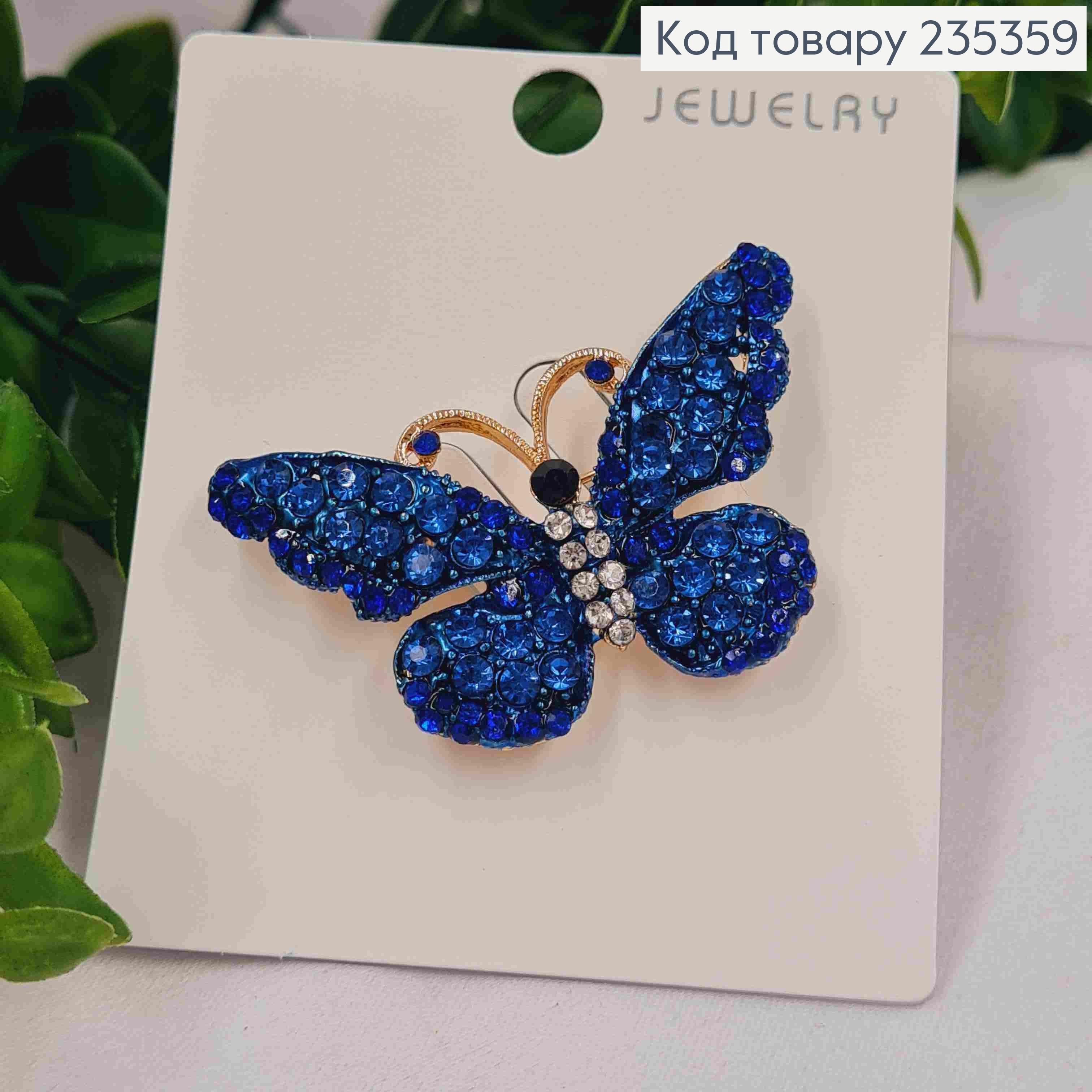 Брошь, "Бабочка" с камешками Синего цвета, размер 4,5*3см, золотого цвета