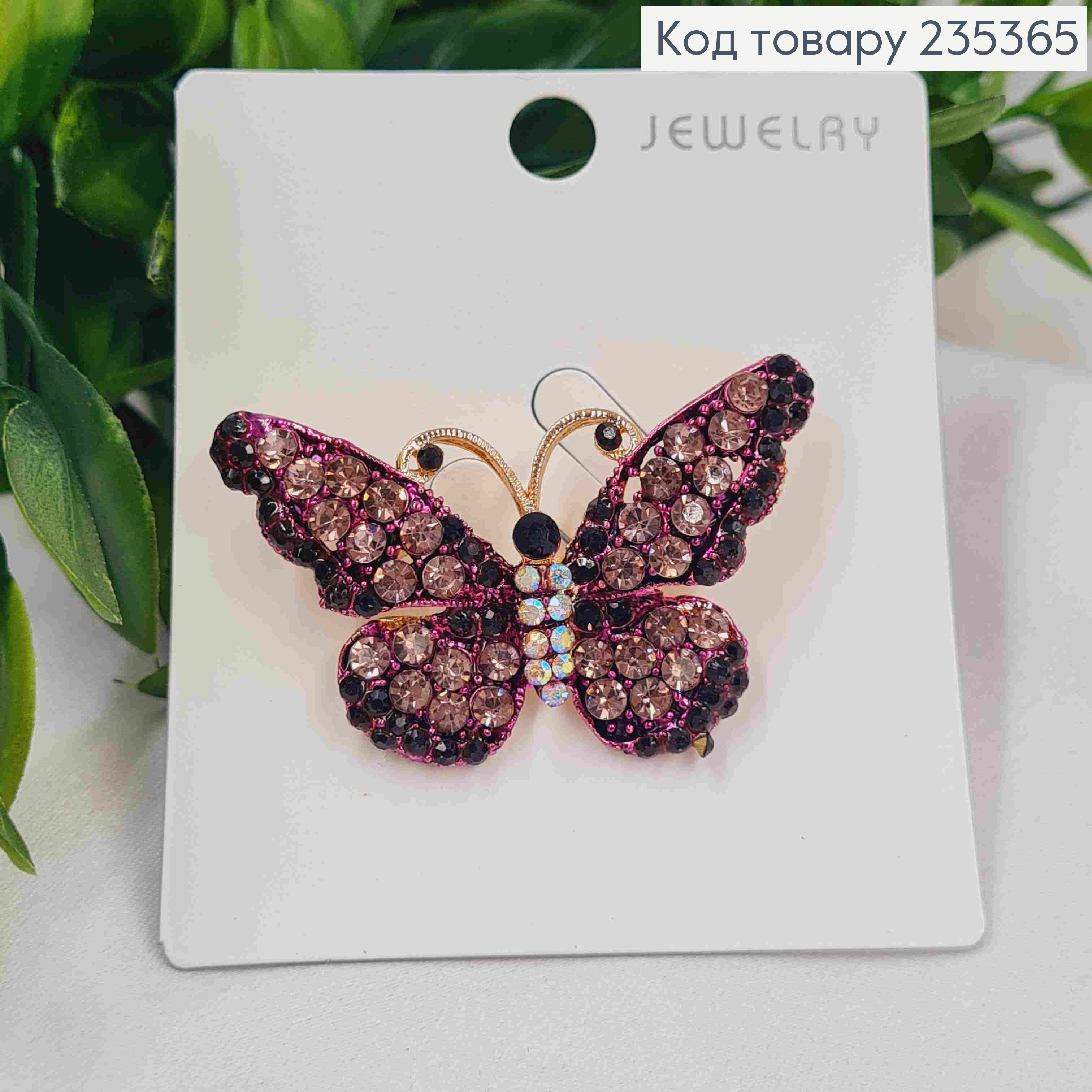 Брошь, "Бабочка" с Розовыми и Черными камешками, размер 4,5*3см, золотого цвета