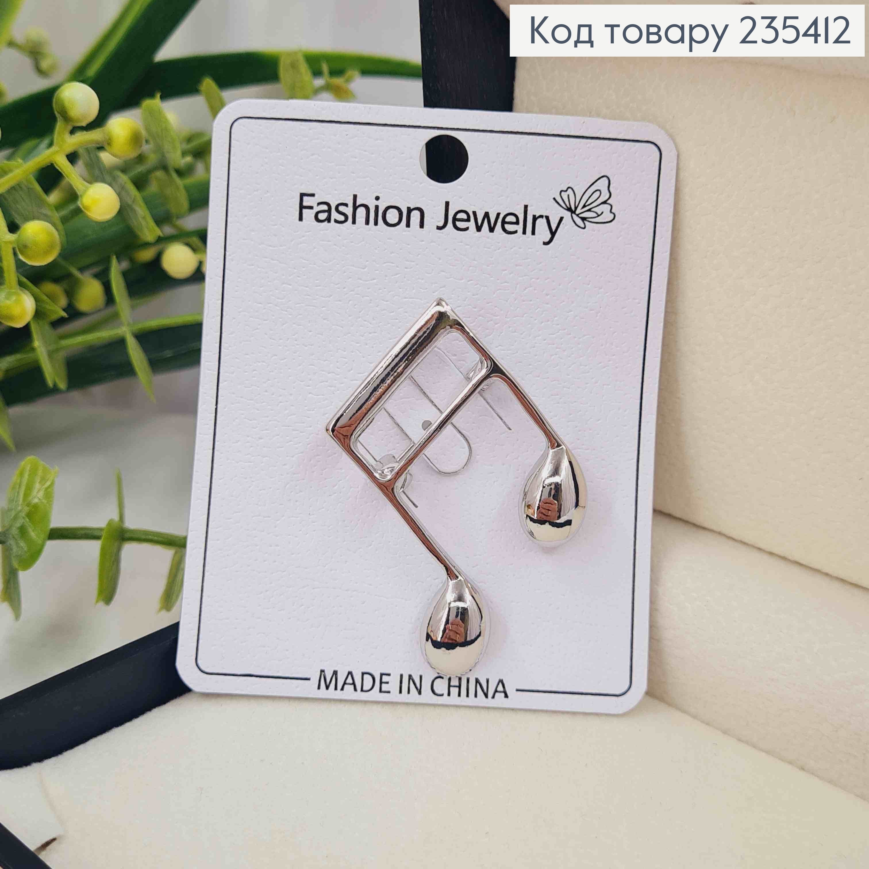 Брошь, "Музыкальная нота", 4,5см, Серебряного цвета