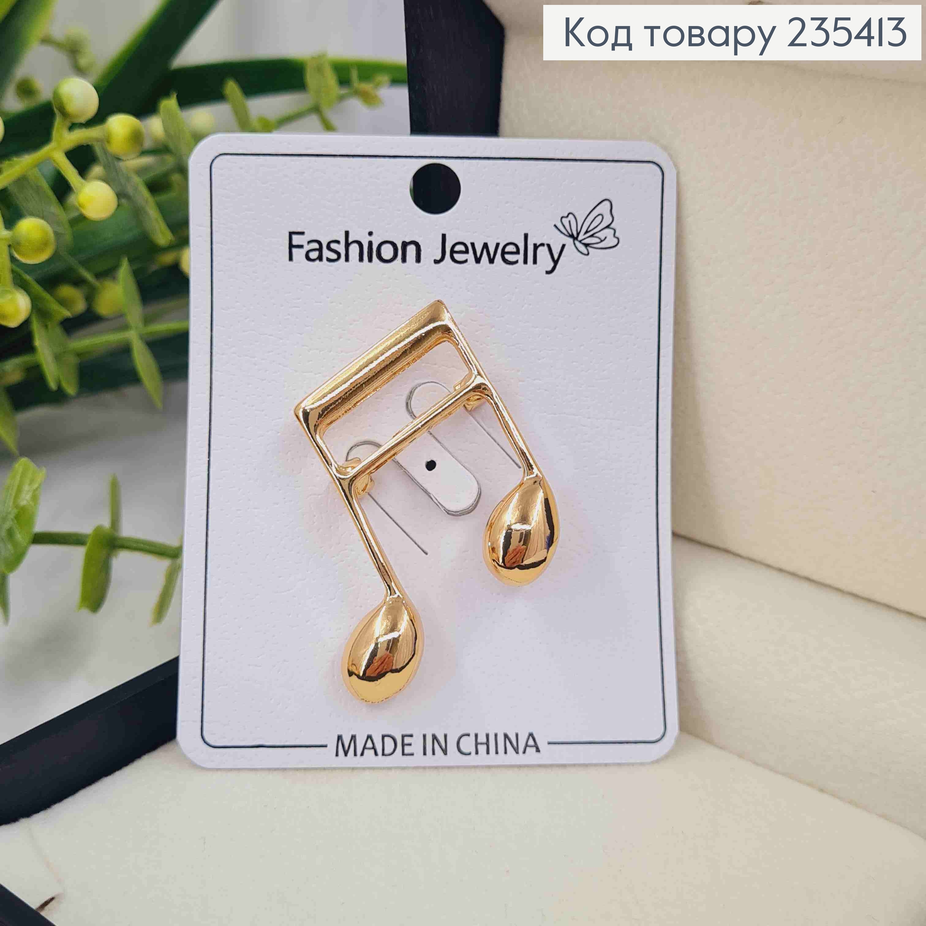 Брошь, "Музыкальная нота", 4,5см, Золотого цвета