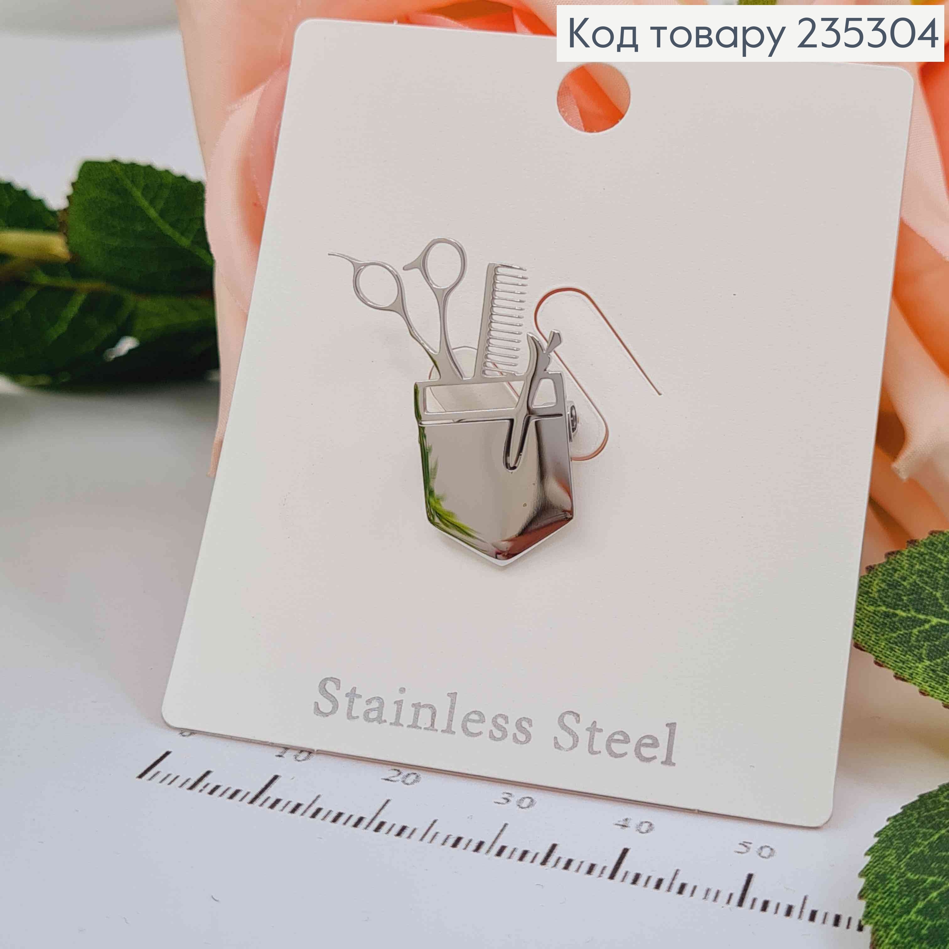 Брошь "Набор парикмахера" СЕРЕБРЯНОГО цвета, 3*1,3см