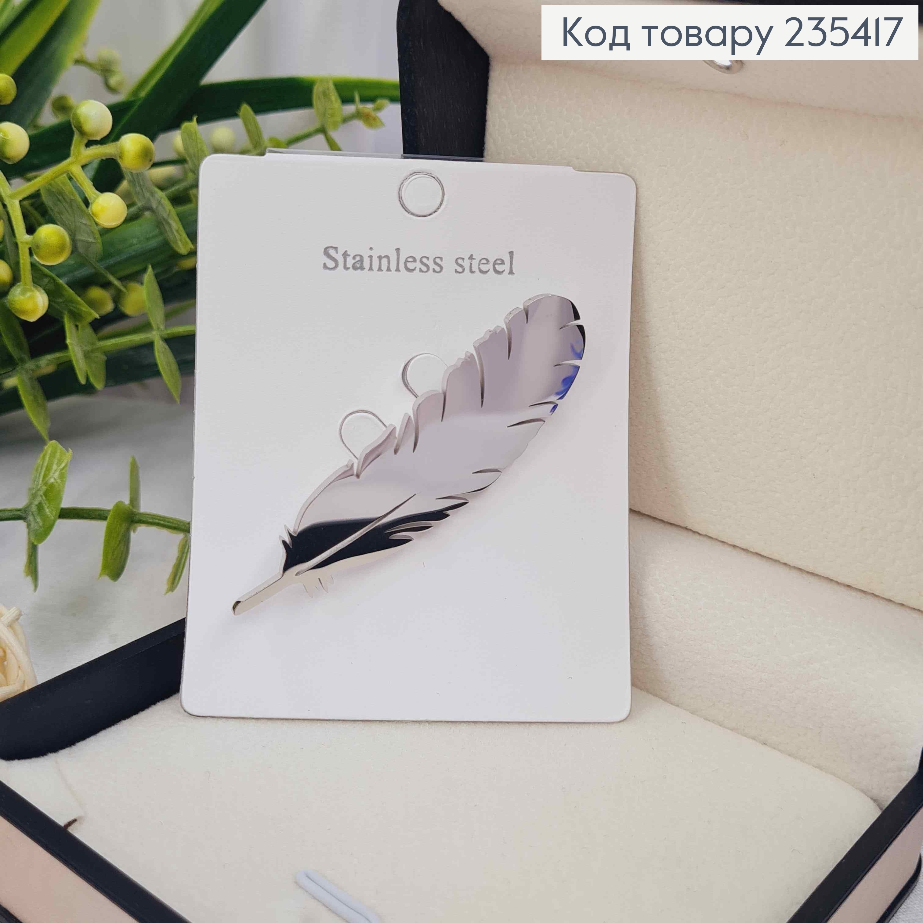 Брошь, "Перья павы", 5,8см, Серебряного цвета