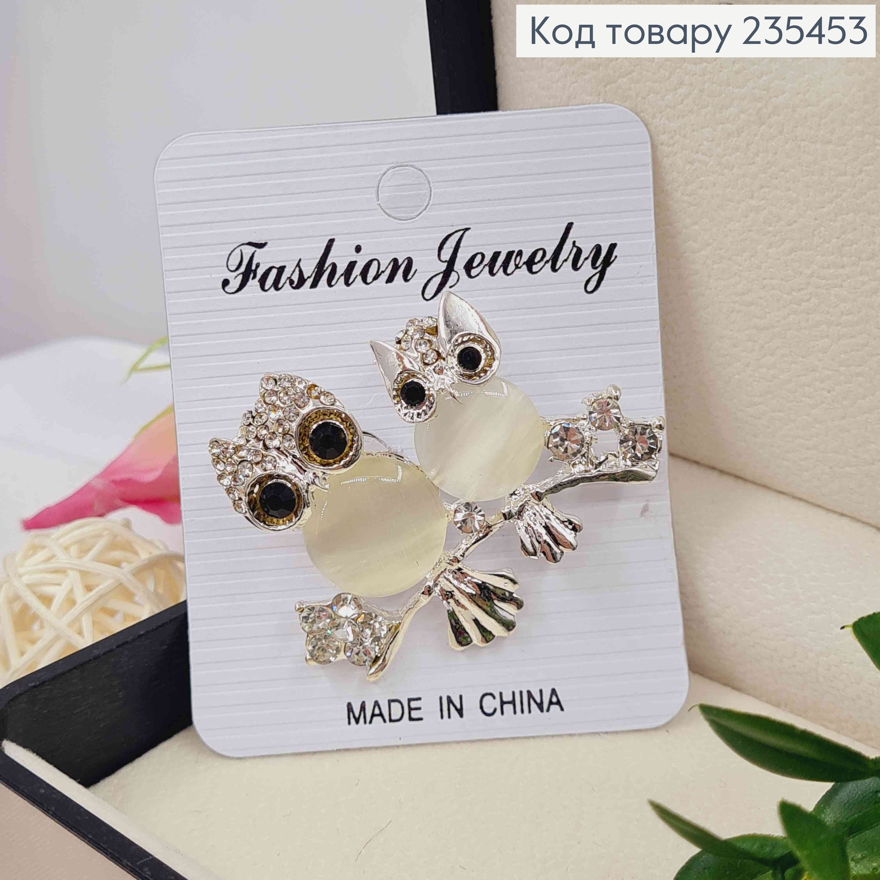 Брошь СОВЕНЯТА украшена Блестящими камешками, 4*5см, Серебряного цвета