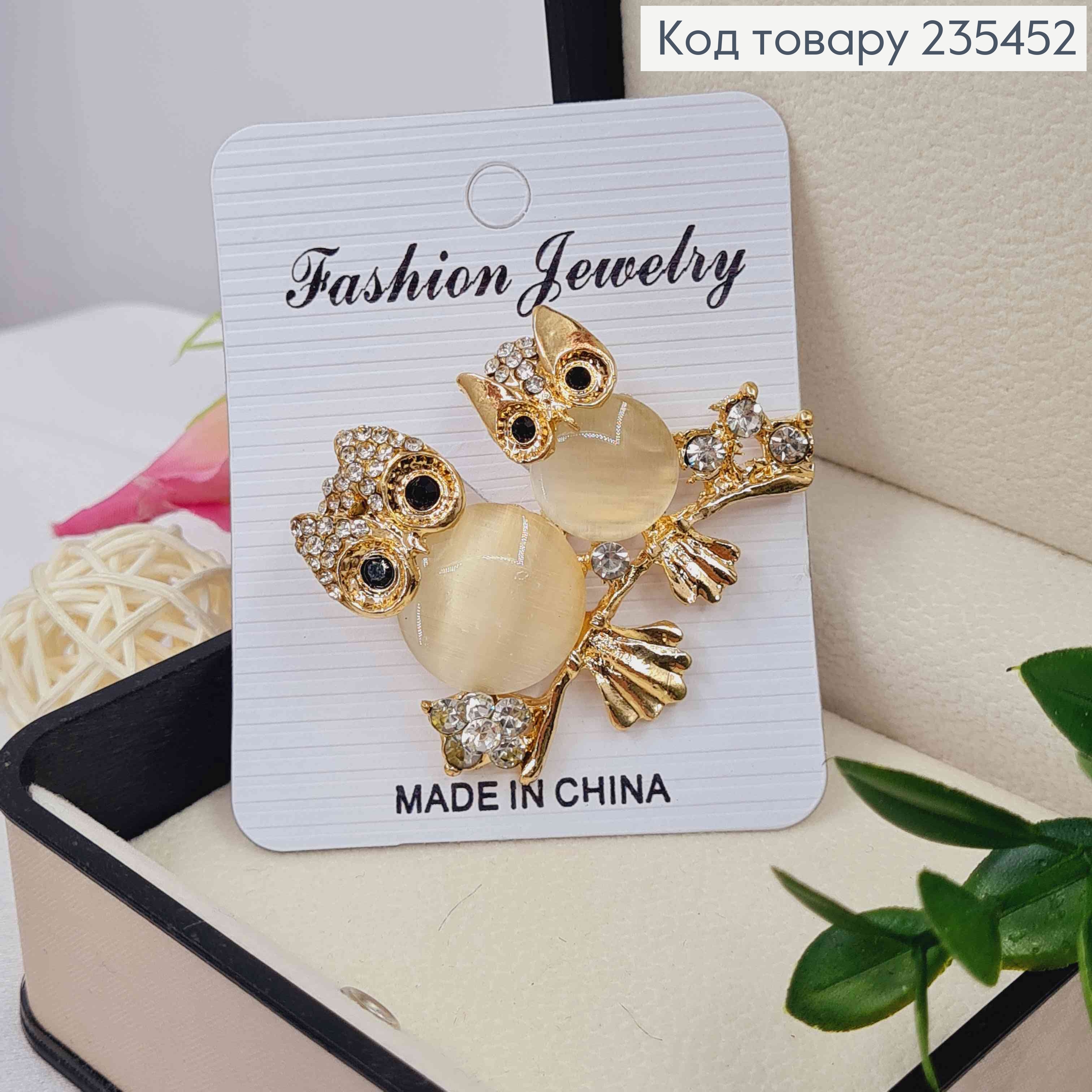 Брошь СОВЕНЯТА украшена Блестящими камешками, 4*5см, Золотого цвета
