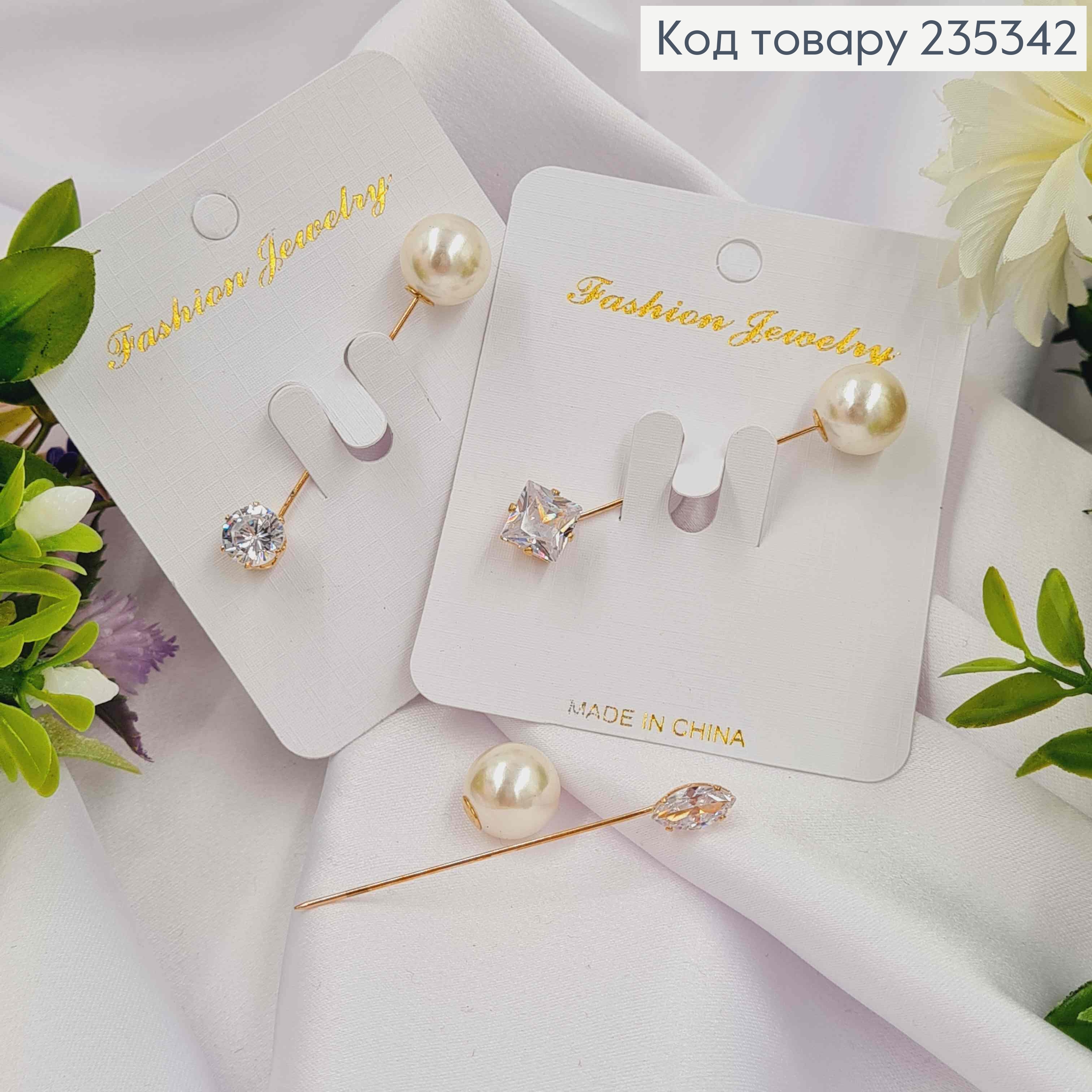 Брошь-шпилька с бусинкой (1,1см) и камнем (0,9см), длина 5,5см, в асортименте