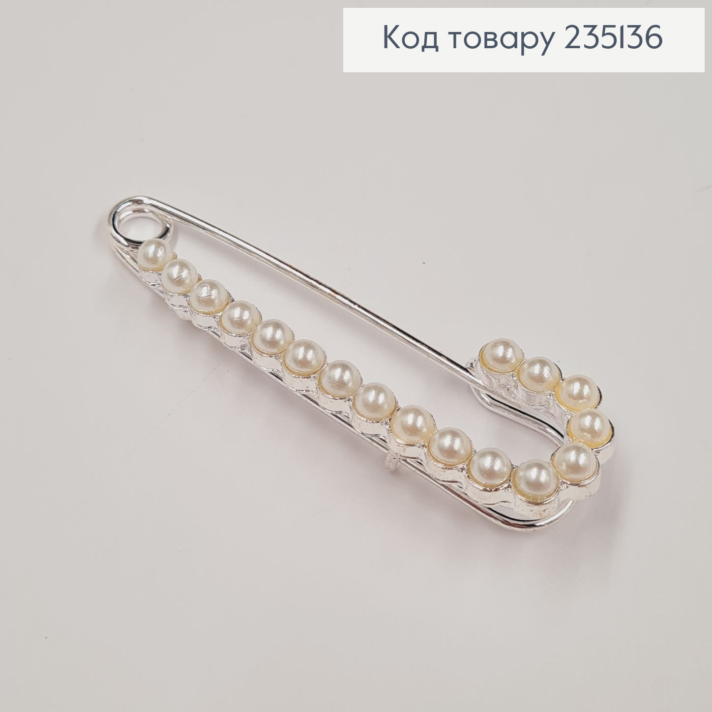 Брошка Шпилька с жемчужинками 7*2 см, серебряный цвет.
