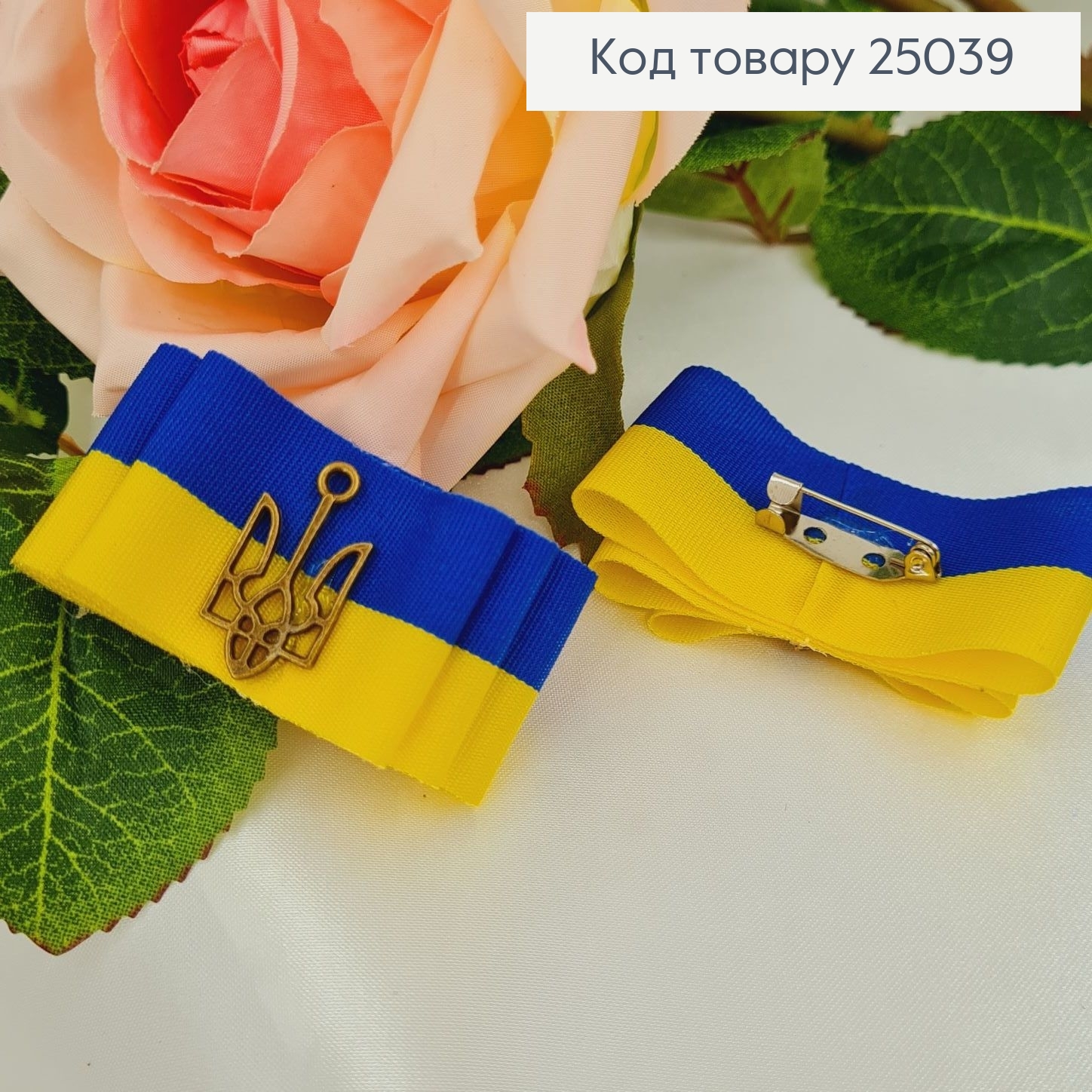 Брош желто-синяя с золотым гербом 5,5*2,5см. Украина