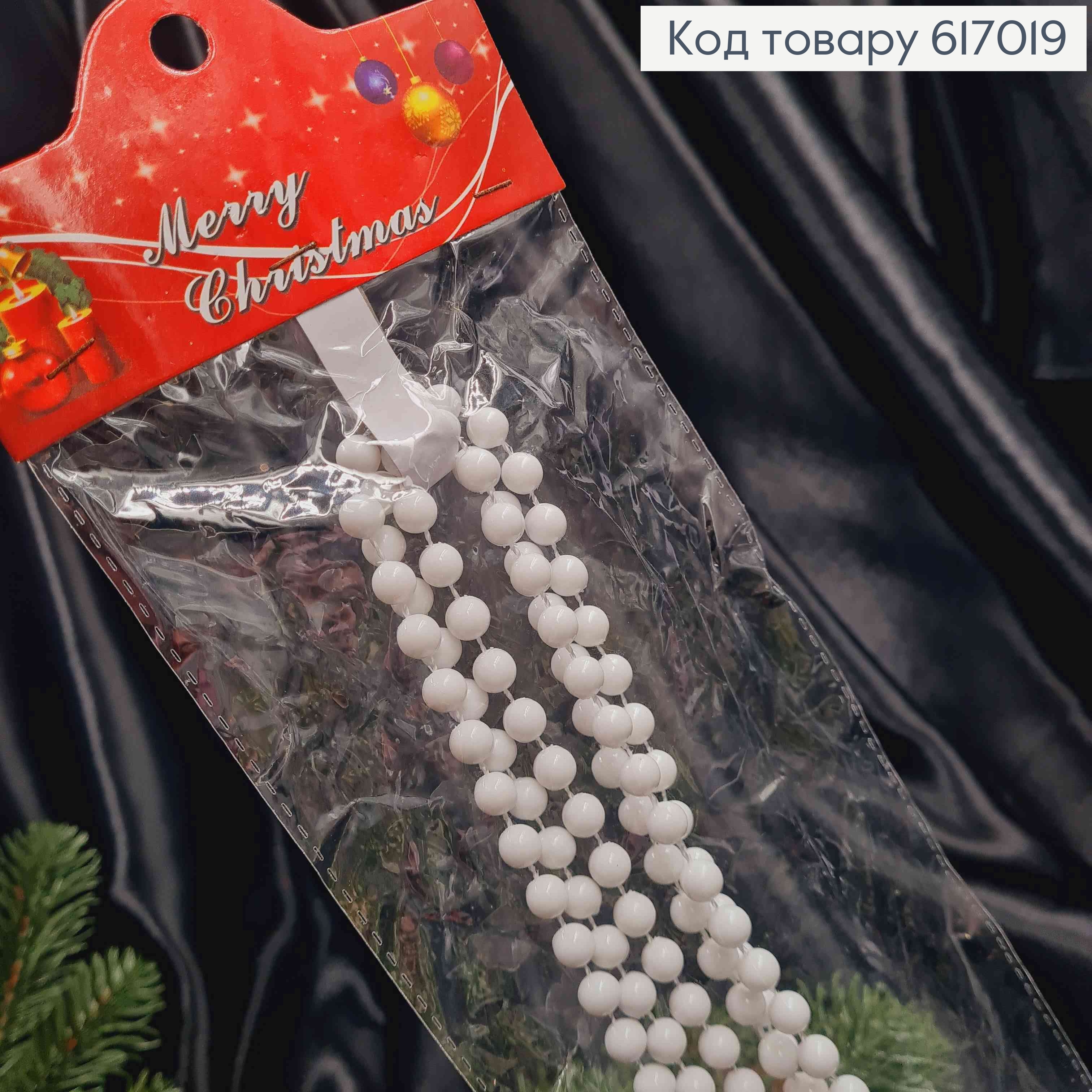 Бусы новогодние, БЕЛИЕ, длина 145см, диаметр шарика 6мм, матовые