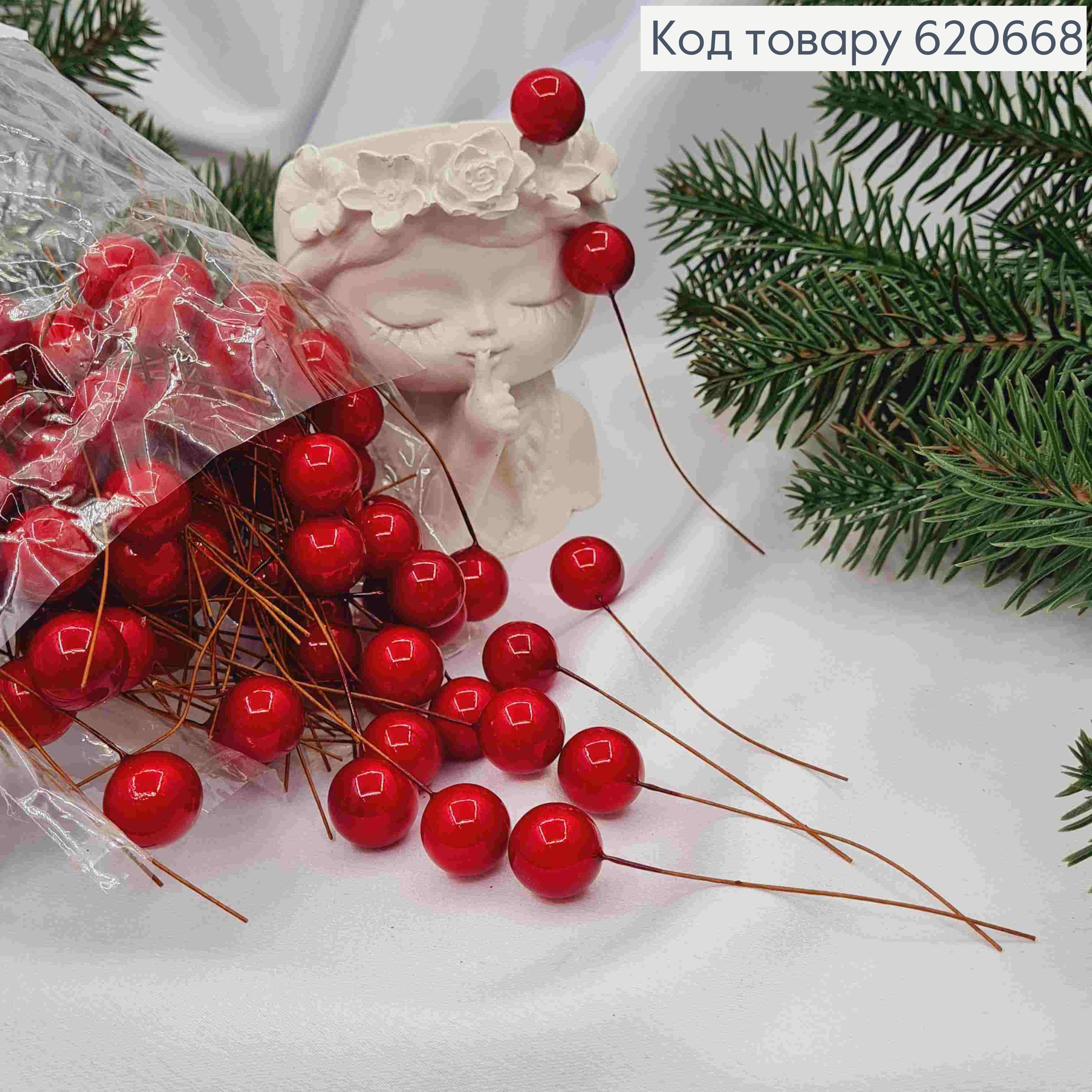 Декор Новогодний, "Ягодка Рябины" (100шт/уп), КРАСНОГО цвета, 1,5см+6,5см