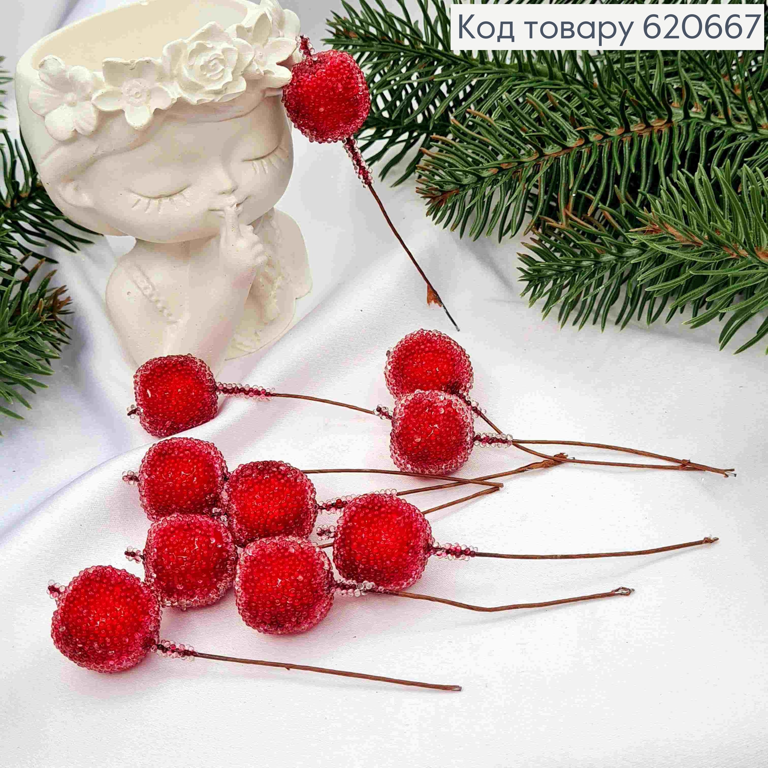 Декор Новогодний, "Ягодка Шиповника" в сахаре (10шт/уп), КРАСНОГО цвета, 2см+7см