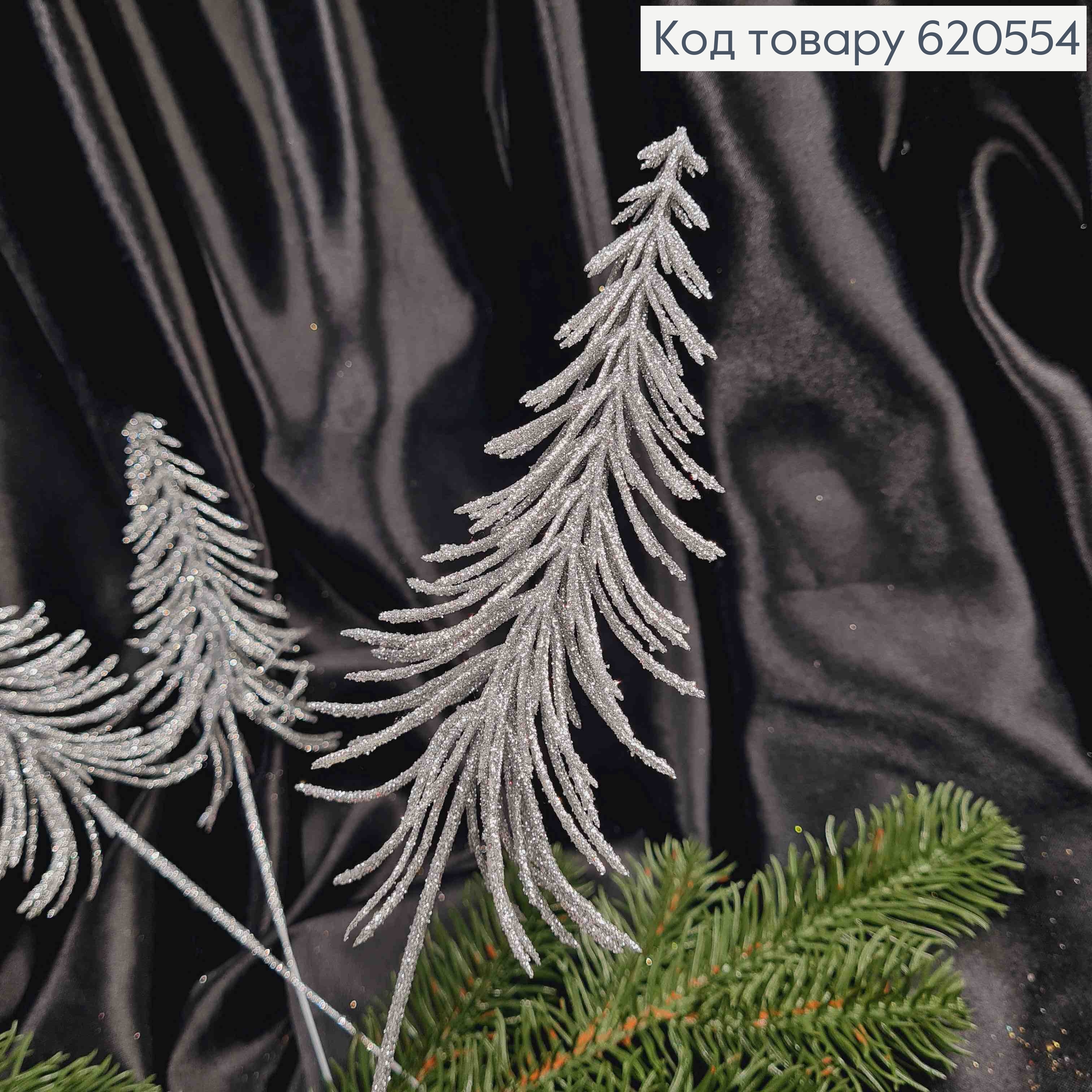 Декор Новогодний, "Елочка", Серебряного цвета, 30см (14см ножка+16см елка)