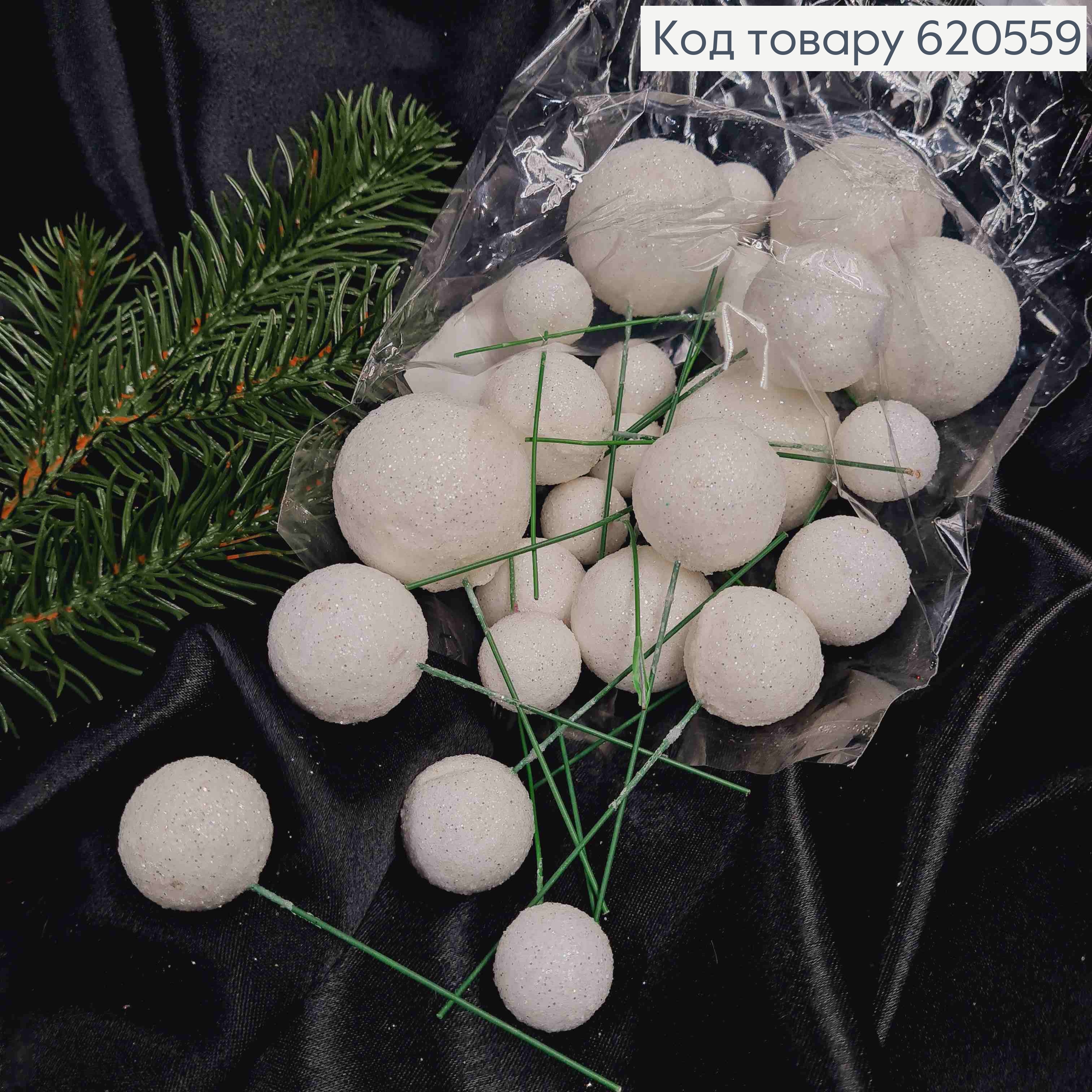 Декор Новогодний, БЕЛЫЕ шарики разного размера, 2см*3см*4см, 20шт/уп