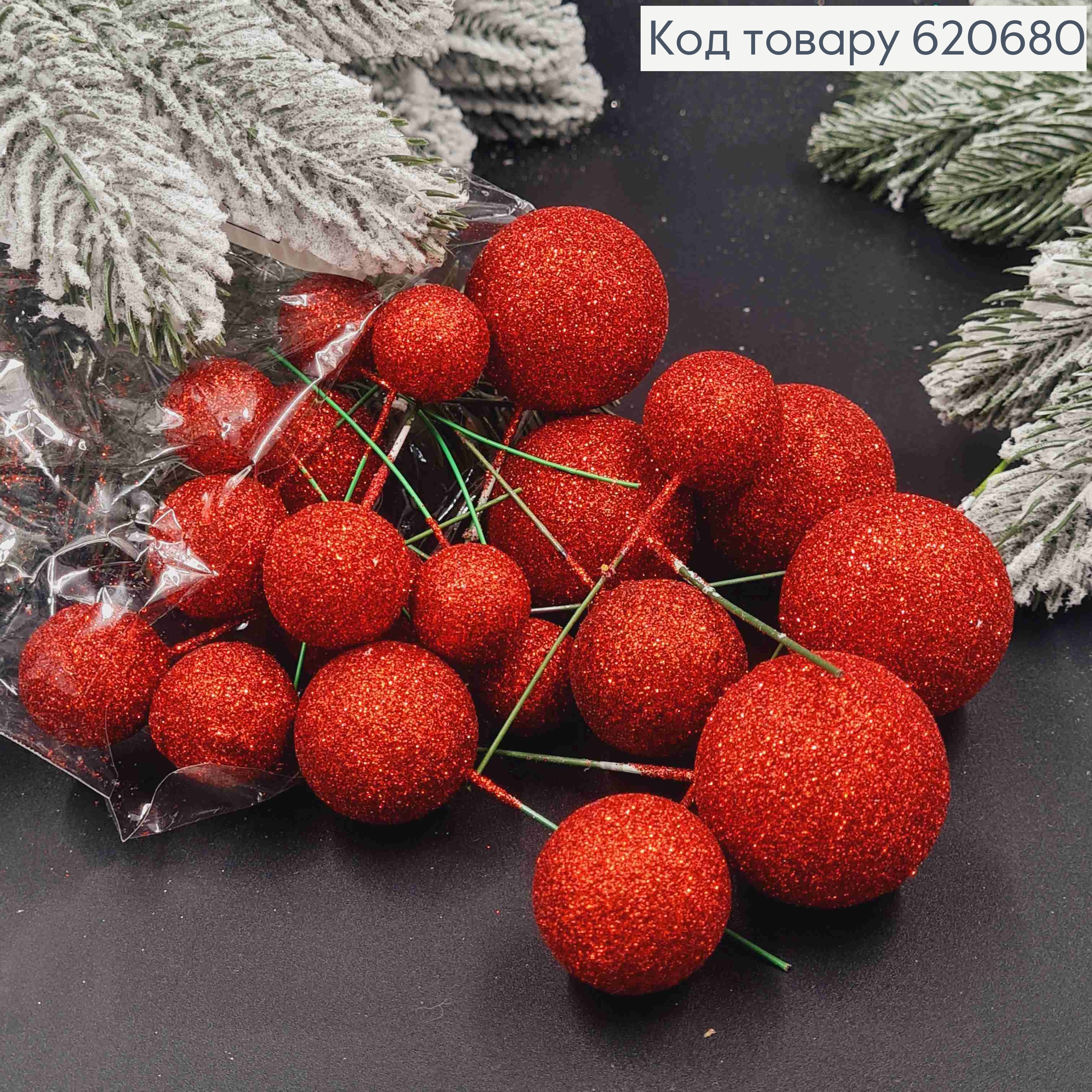 Декор новогодний, КРАСНЫЕ-БЛЕСК шарика (20шт) разного размера (пластик), 2см*3см*4см, 20шт/уп