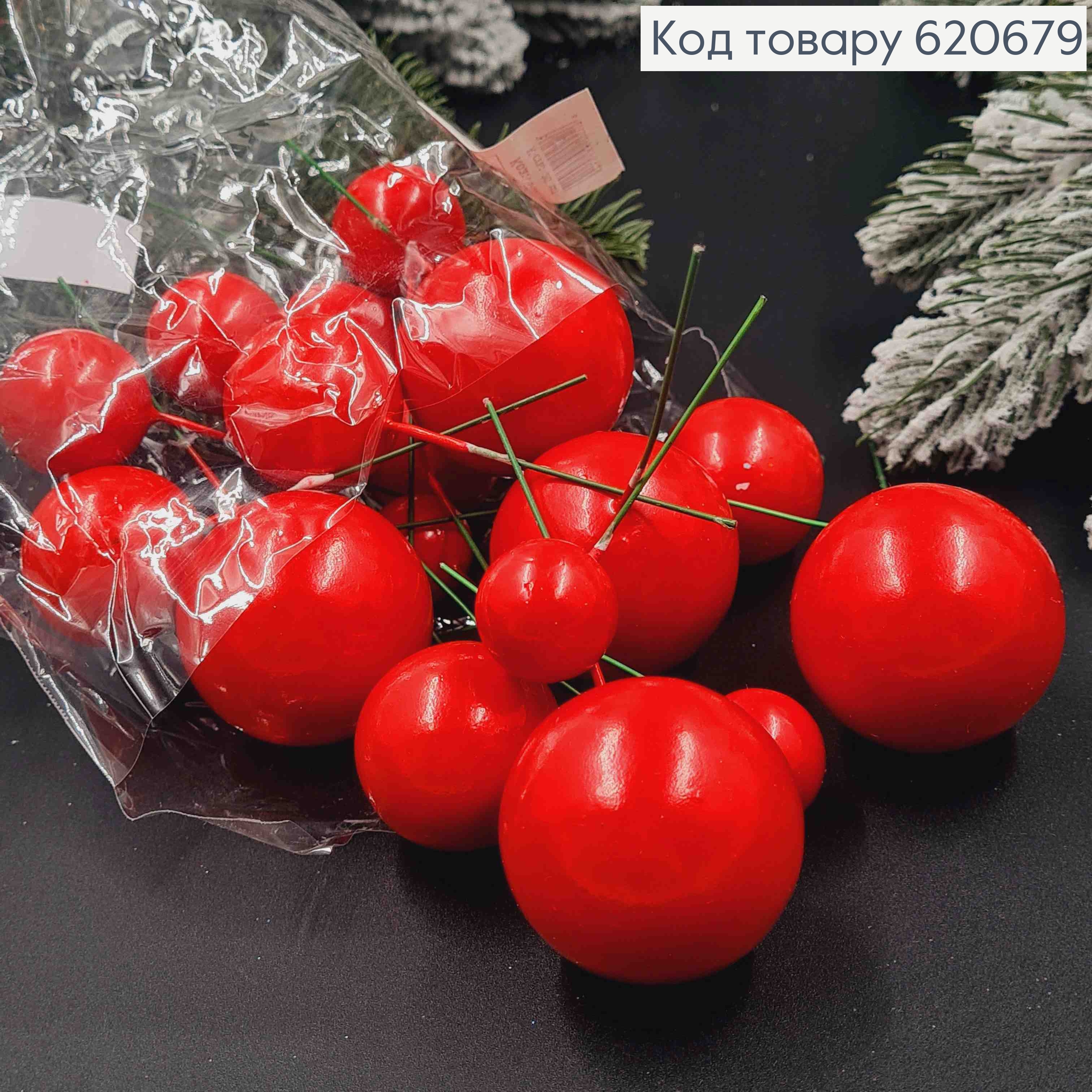 Ягодки КАЛИНЫ, МОЛОЧНОГО цвета (20шт) на металлической проволоке, 1,5см+6,5см 620763 фото