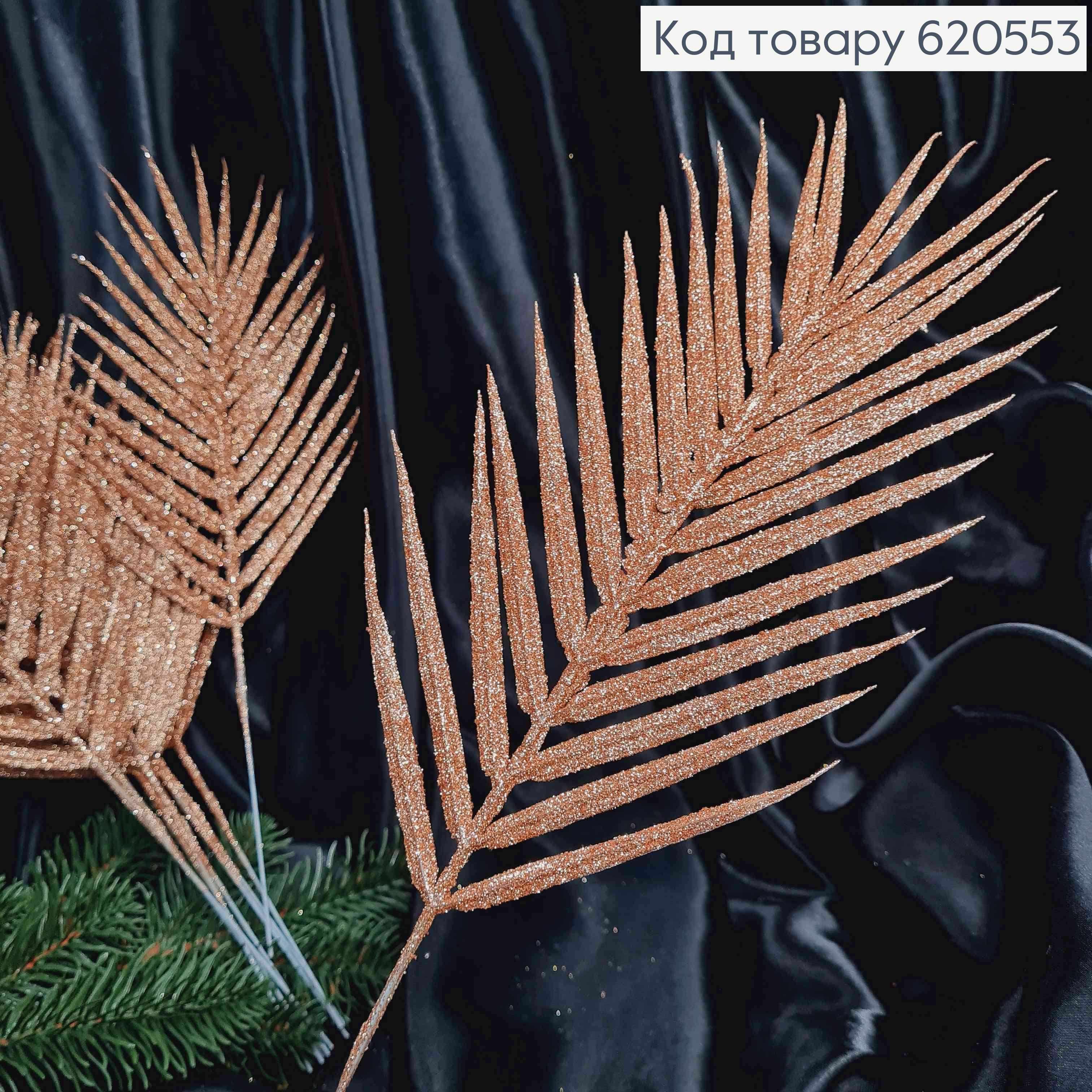 Декор Новогодний, Пальмовая веточка, цвета ПУДРА-ШАМПАНЬ, 44см