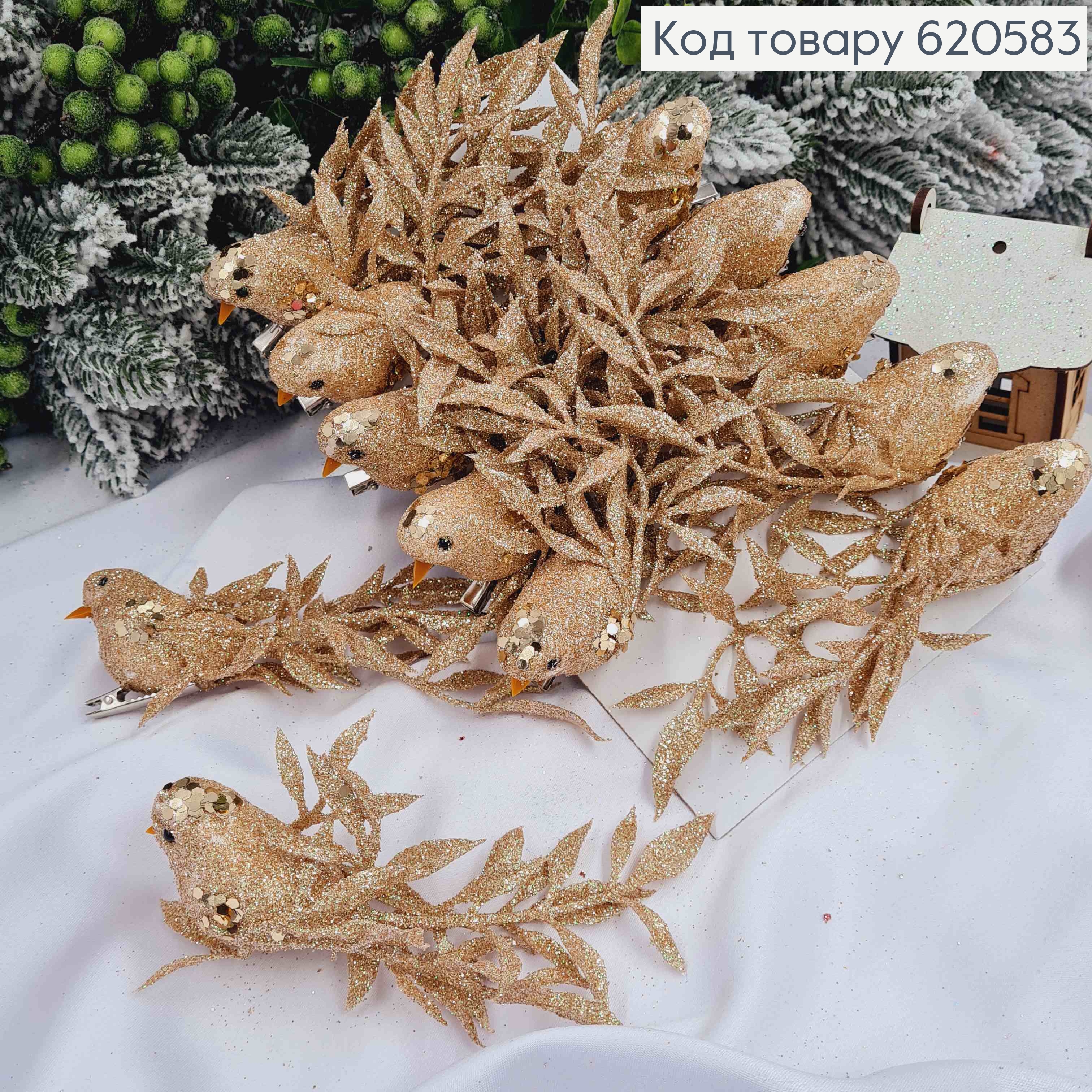 Набор (2шт) : ПТИЦА на заколке, БЕЛОГО цвета+Блеск, 15см, новогодний декор 620758 фото