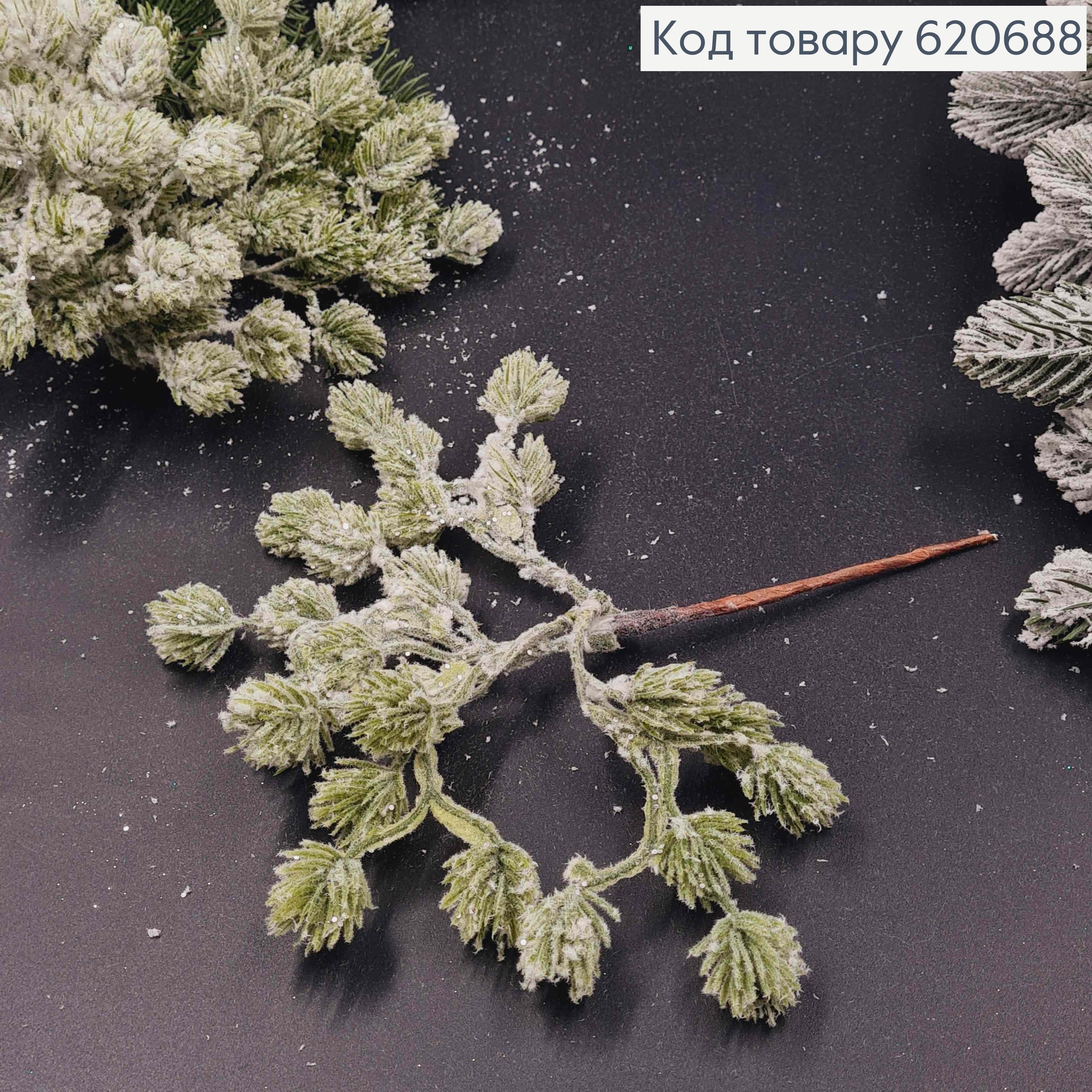Декор Новогодний, заснеженная веточка Сосны, ЗЕЛЕНОГО цвета, 20см