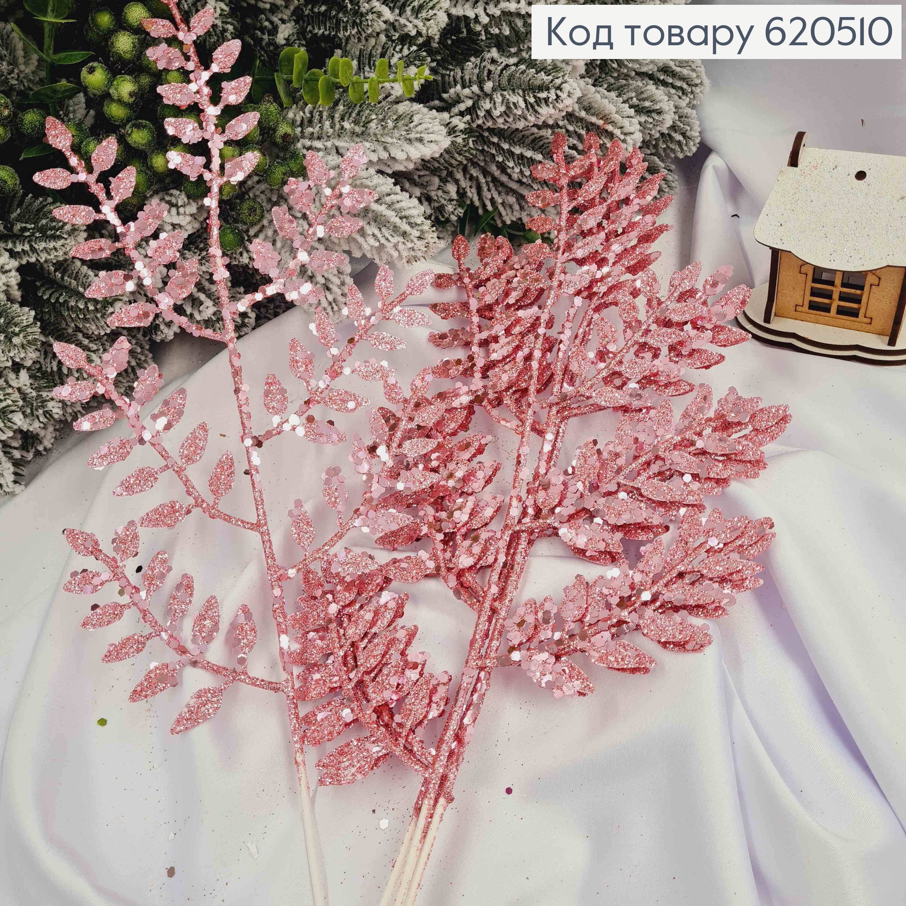 Наор веток (5шт) Папоротника РОЗОВОГО цвета, блеск, 5шт/уп, 36см, Украина