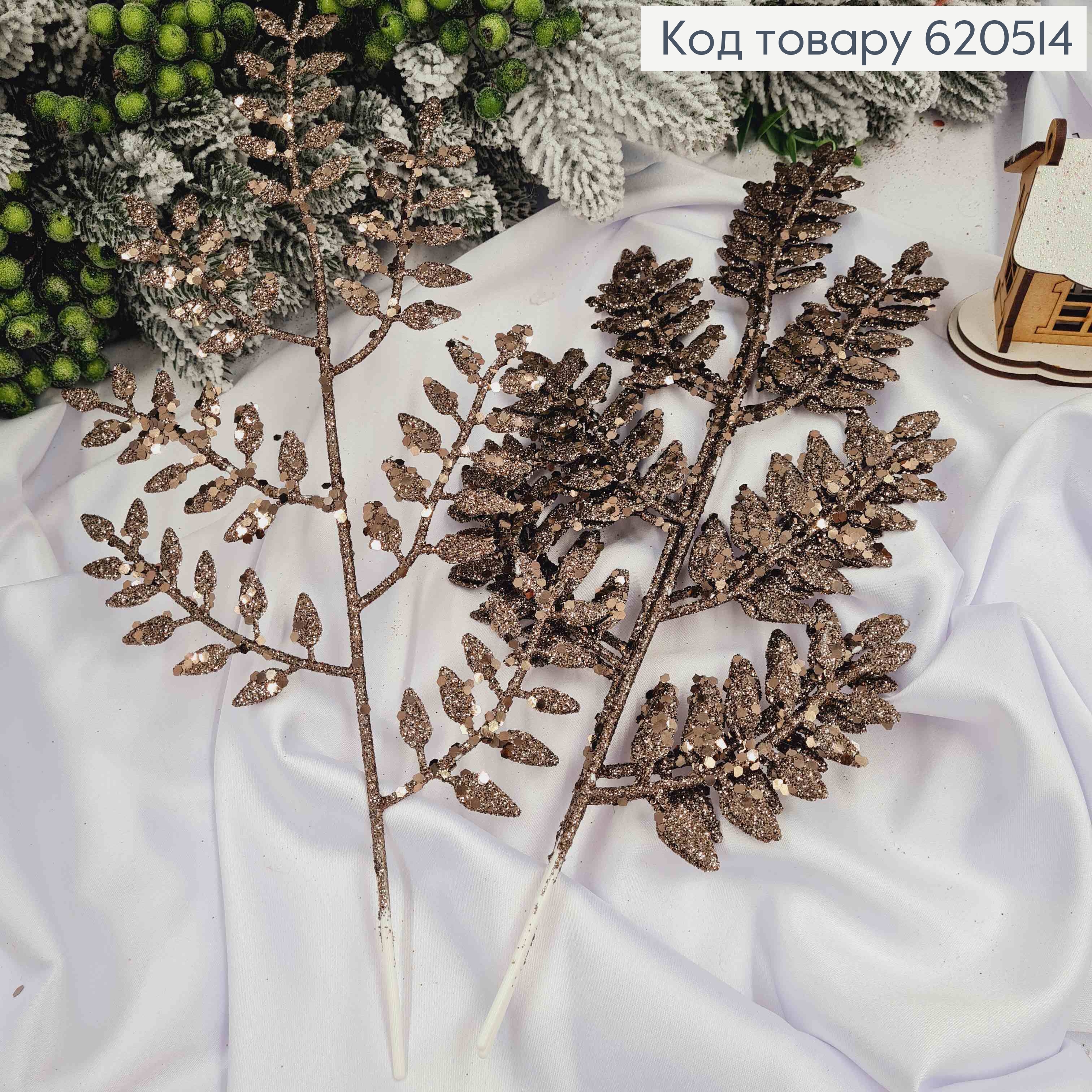 Набор ветвей (5шт) Папоротника СЕРО-КОРИЧЕСКОГО цвета, блеск, 5шт/уп, 36см