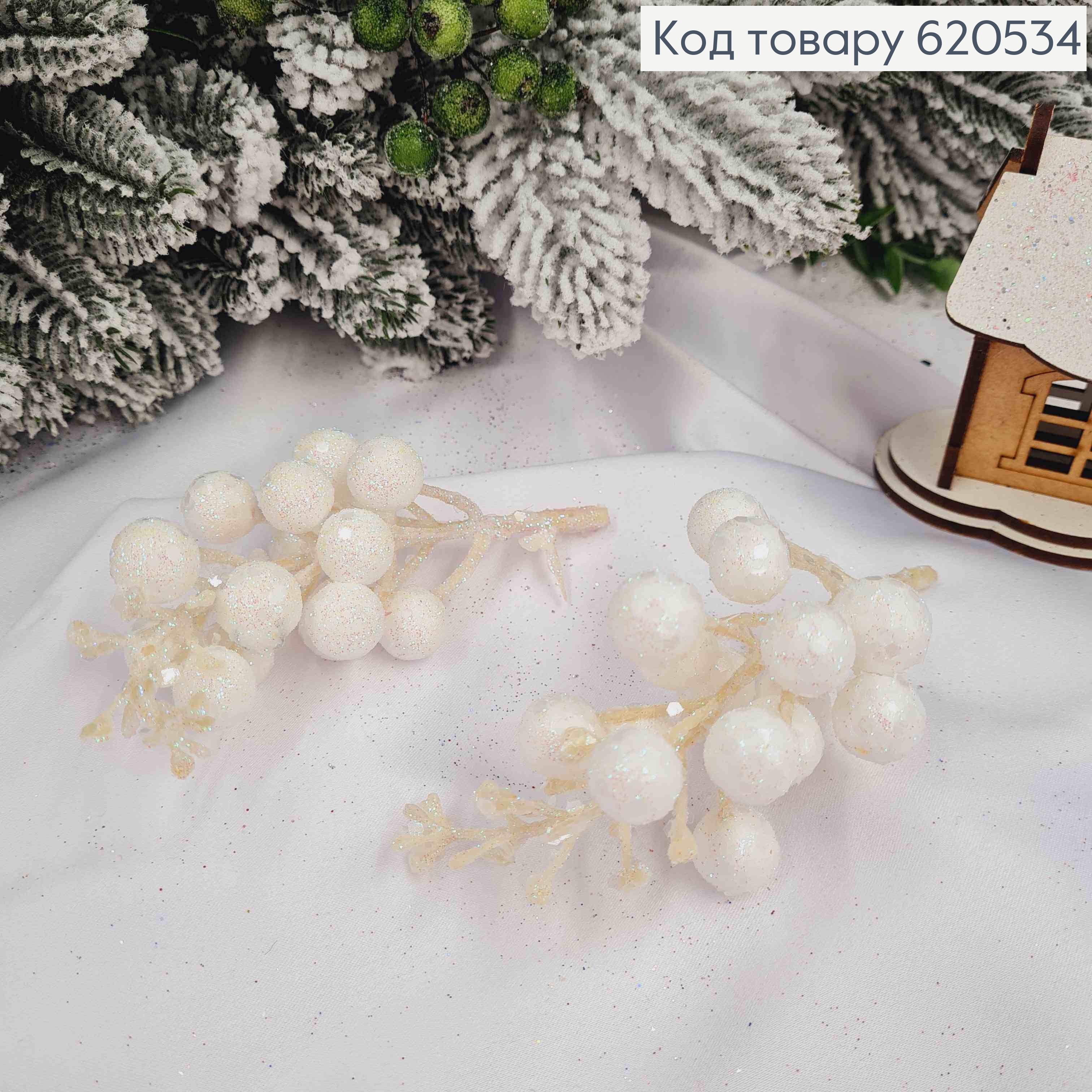 Декор Новогодний, веточка ягод БЕЛОГО цвета, 13см