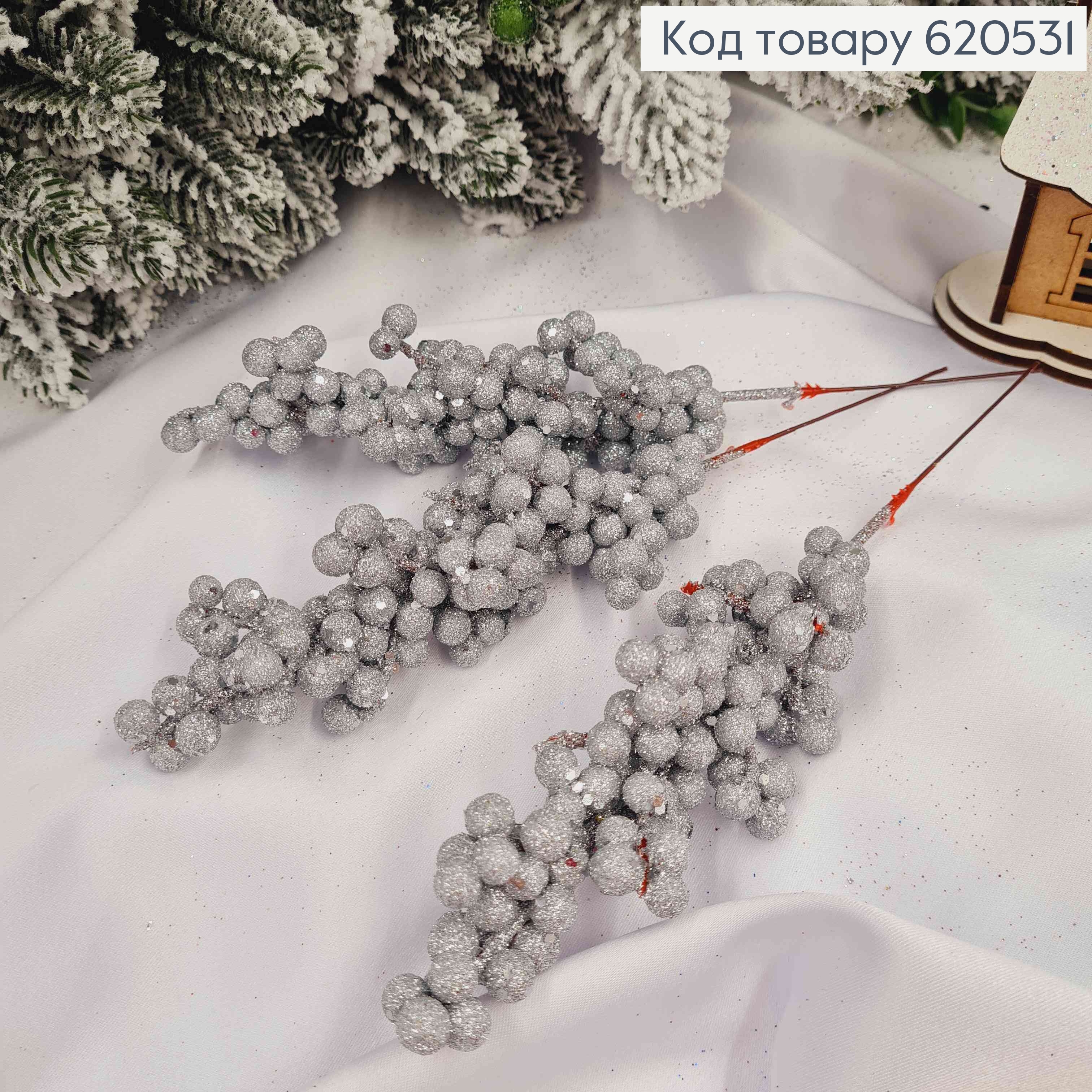 Ягодки КАЛИНЫ, СЕРЕБРЯНОГО цвета (20шт) на металлической проволоке, 1,5см+6,5см 620762 фото