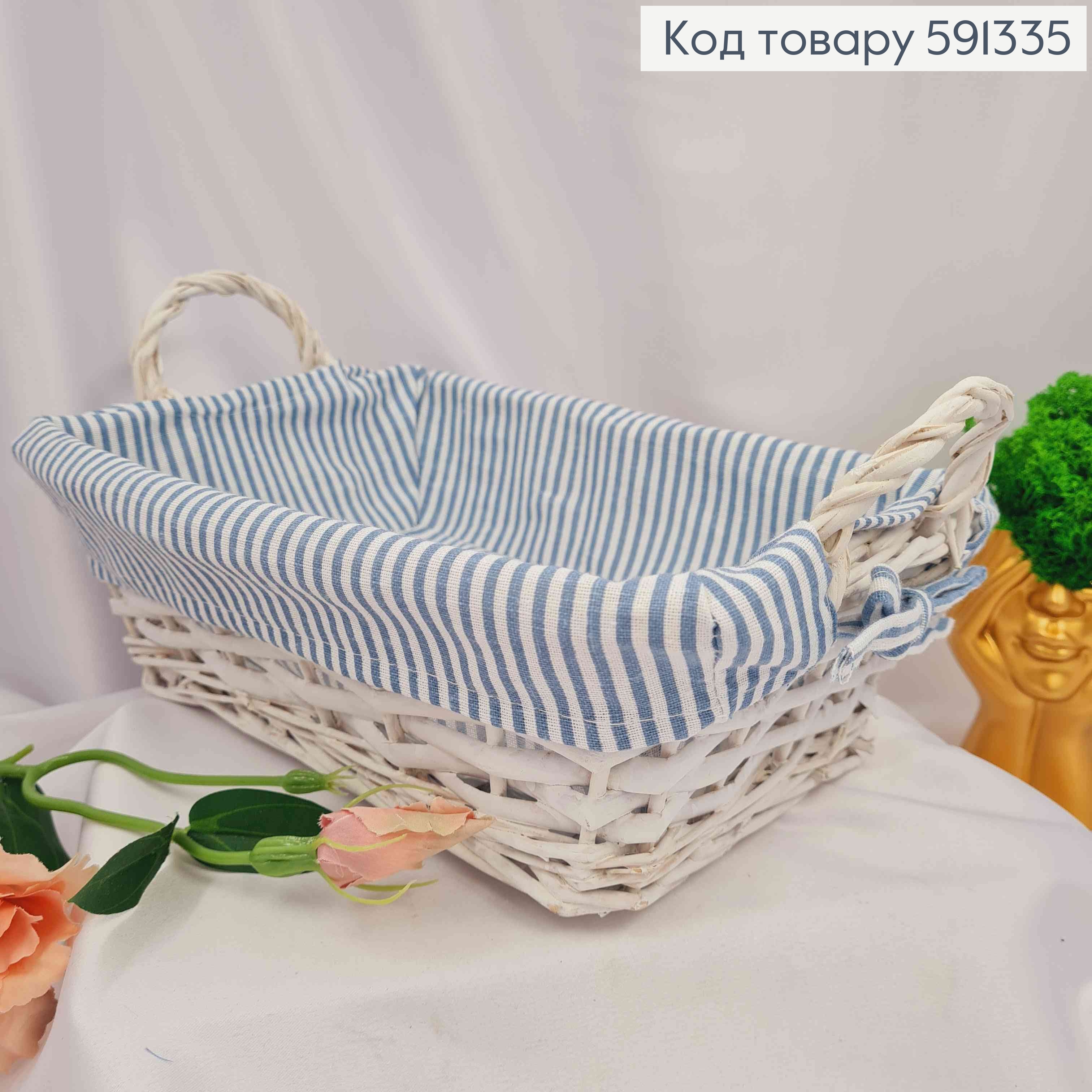 Декоративная Плетеная Корзинка из дерева, с Голубовато-Белой Полосатой ткани, Прямоугольная 29*22*10см
