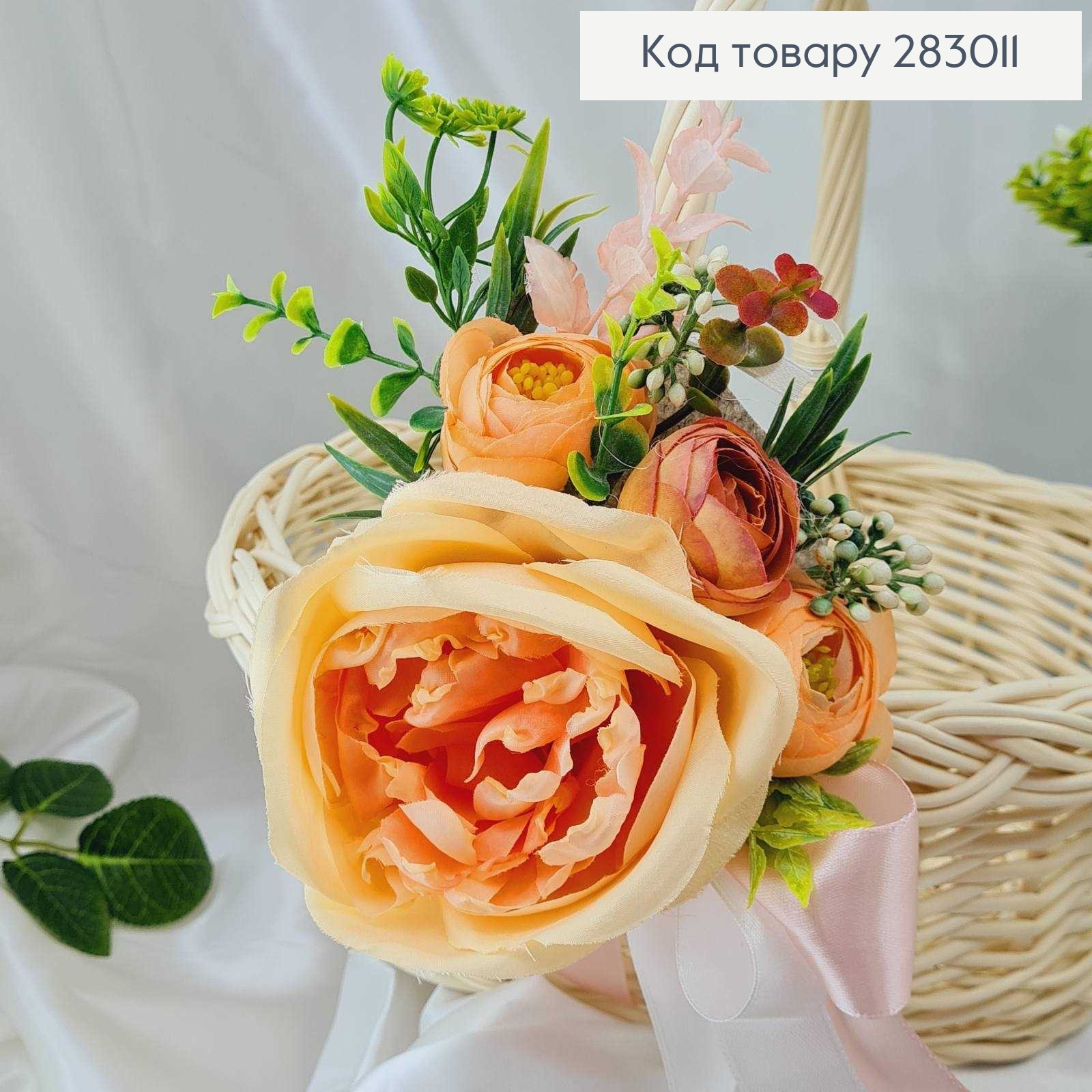 Повязка для корзины РЫЖИЙ Бант с Кремовой Розой, на завязках, размер 13*30см, Украина 283244 фото