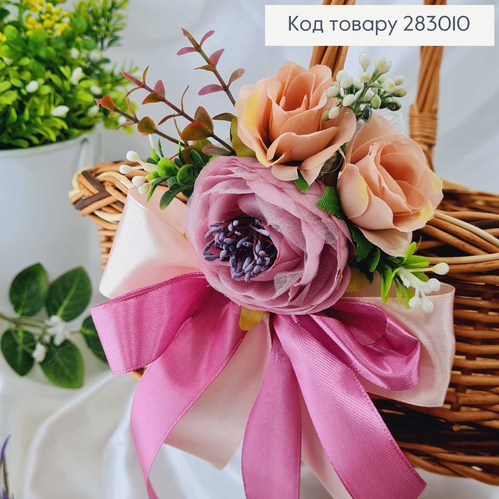 Повязка для корзины Бант цвета КАПУЧИНО с Пудровым Цветком, на завязках, размер 13*26см, Украина 283239 фото