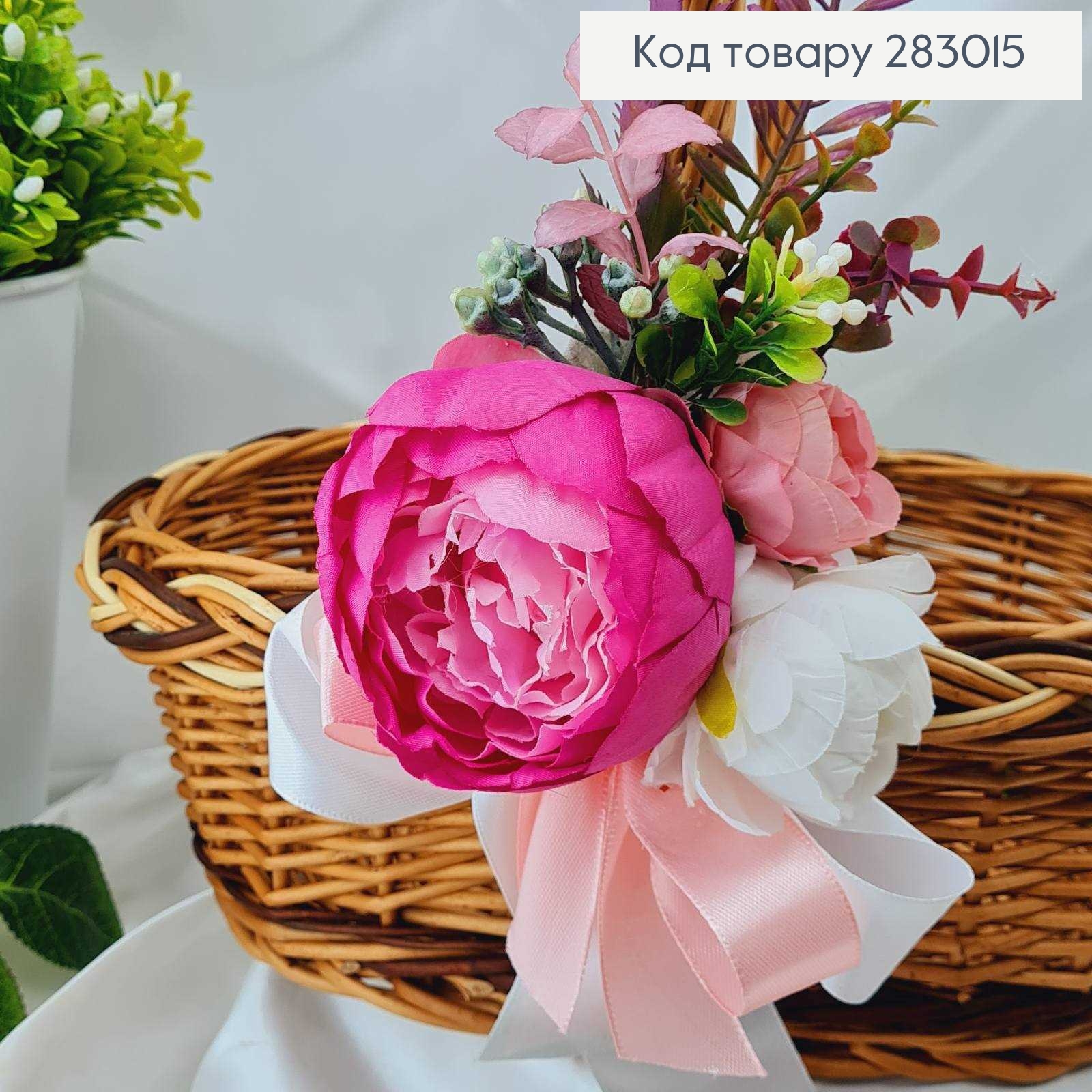 Повязка для корзины БЕЛЫЙ Бант с Розовым Цветком, на завязках, размер 13*26см, Украина 283240 фото