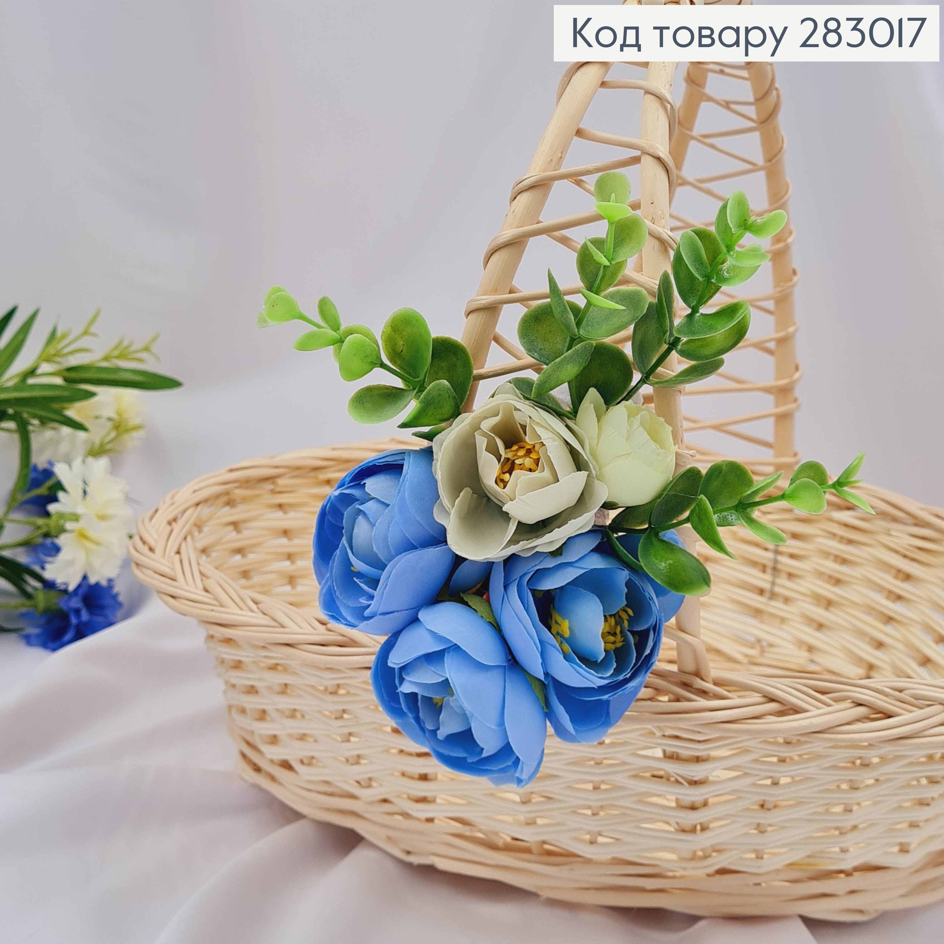 Декоративная повязка для корзины с Голубыми и Молочными цветочками и зеленью, 10*15см на завязках