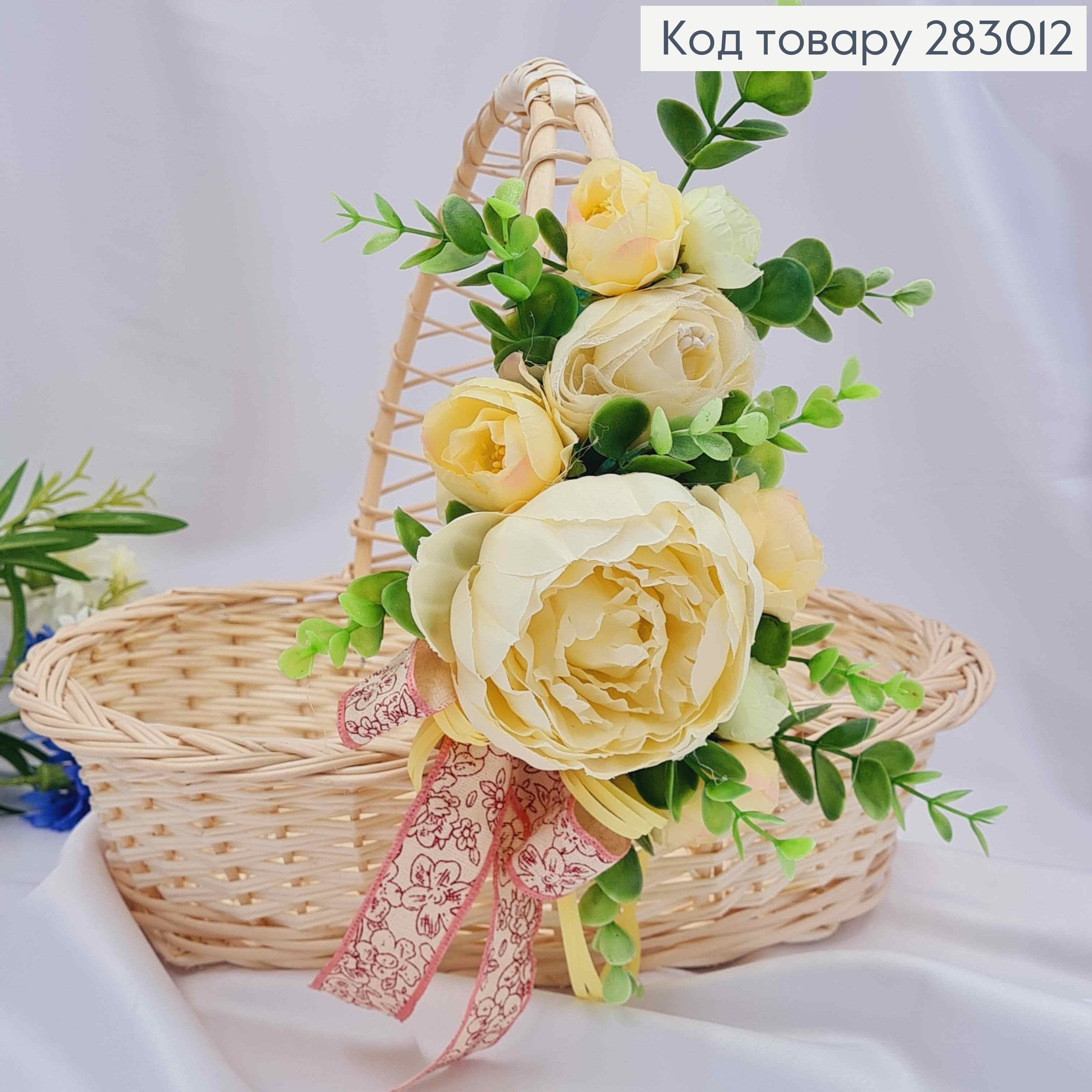 Декоративная повязка для корзины с МОЛОЧНЫМ Пионом, цветами, зеленью и бантиком, 22*13см на завязках