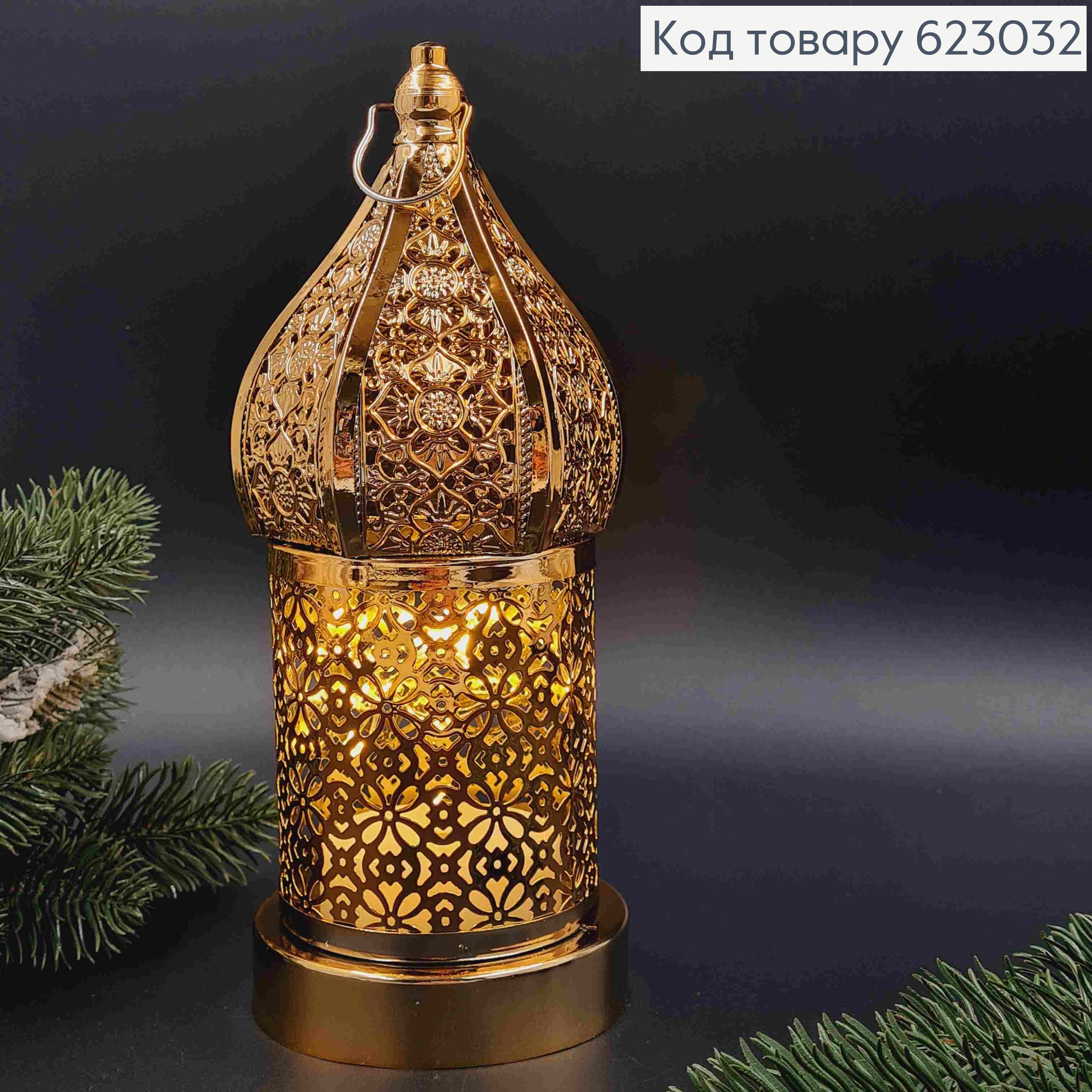 Декоративный LED фонарик 26см Теплого цвета, ЗОЛОТОЙ металлический корпус (без батареек)