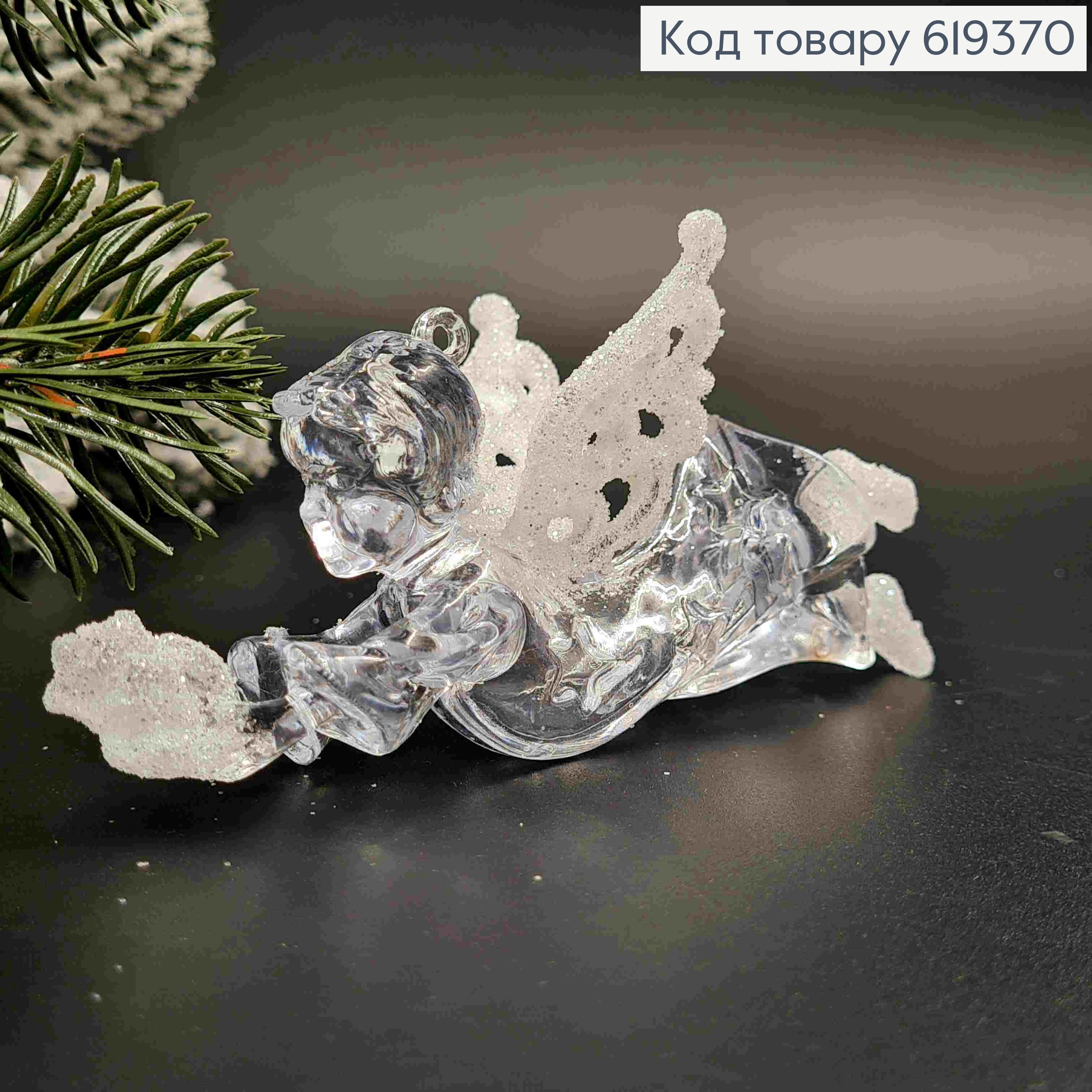 Фигурка "АНГЕЛ", ПРОЗРАЧНЫЙ с блеском, размер 10*6см, новогоднее украшение, пластик.