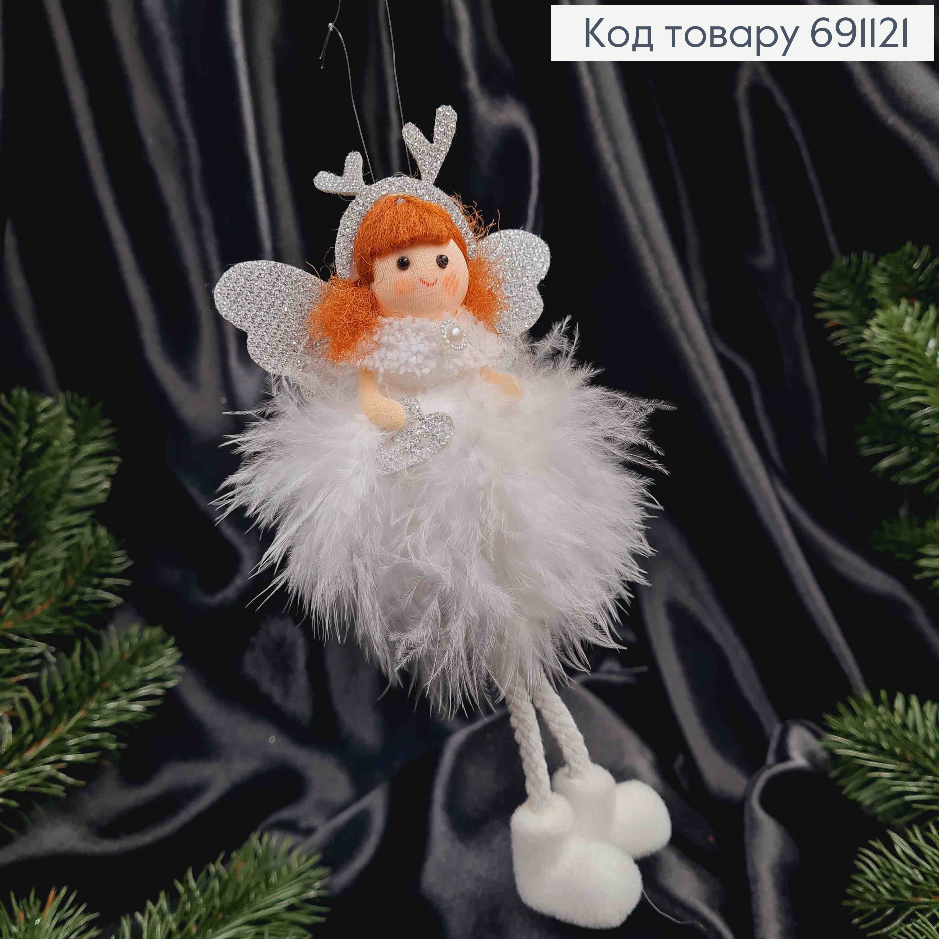 Фигурка ФЕЯ в белом платье из перьев с ногами на подвеске, длина: 18см.