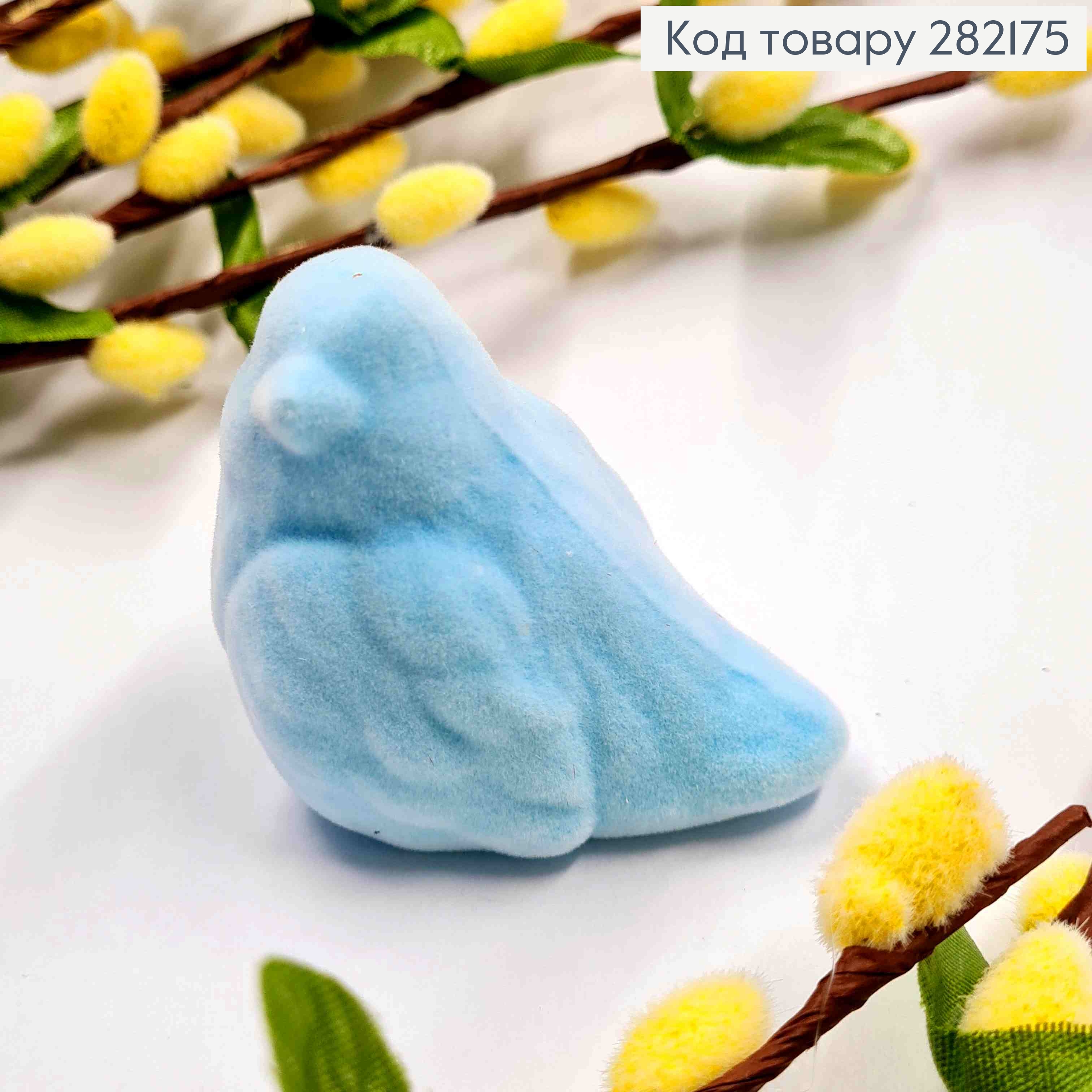 Фигурка "ВОРОБЕЙ", (пластик, бархат), ГОЛУБОГО цвета, 5*5,5см
