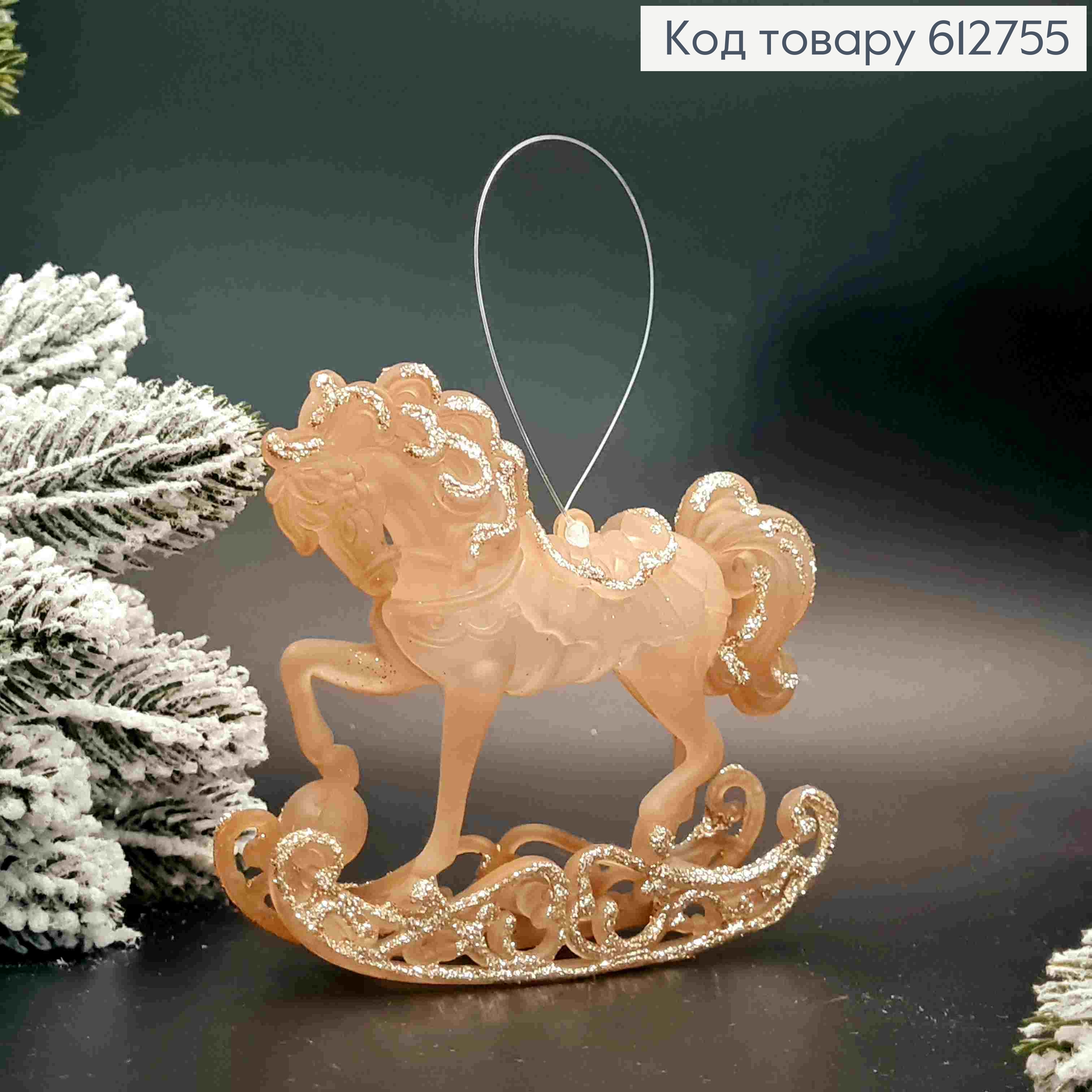 Фигурка блеск "КОНЬ", ШАМПАНЬ, размер 10*10см, украшение пластиковое, Украина 612751 фото