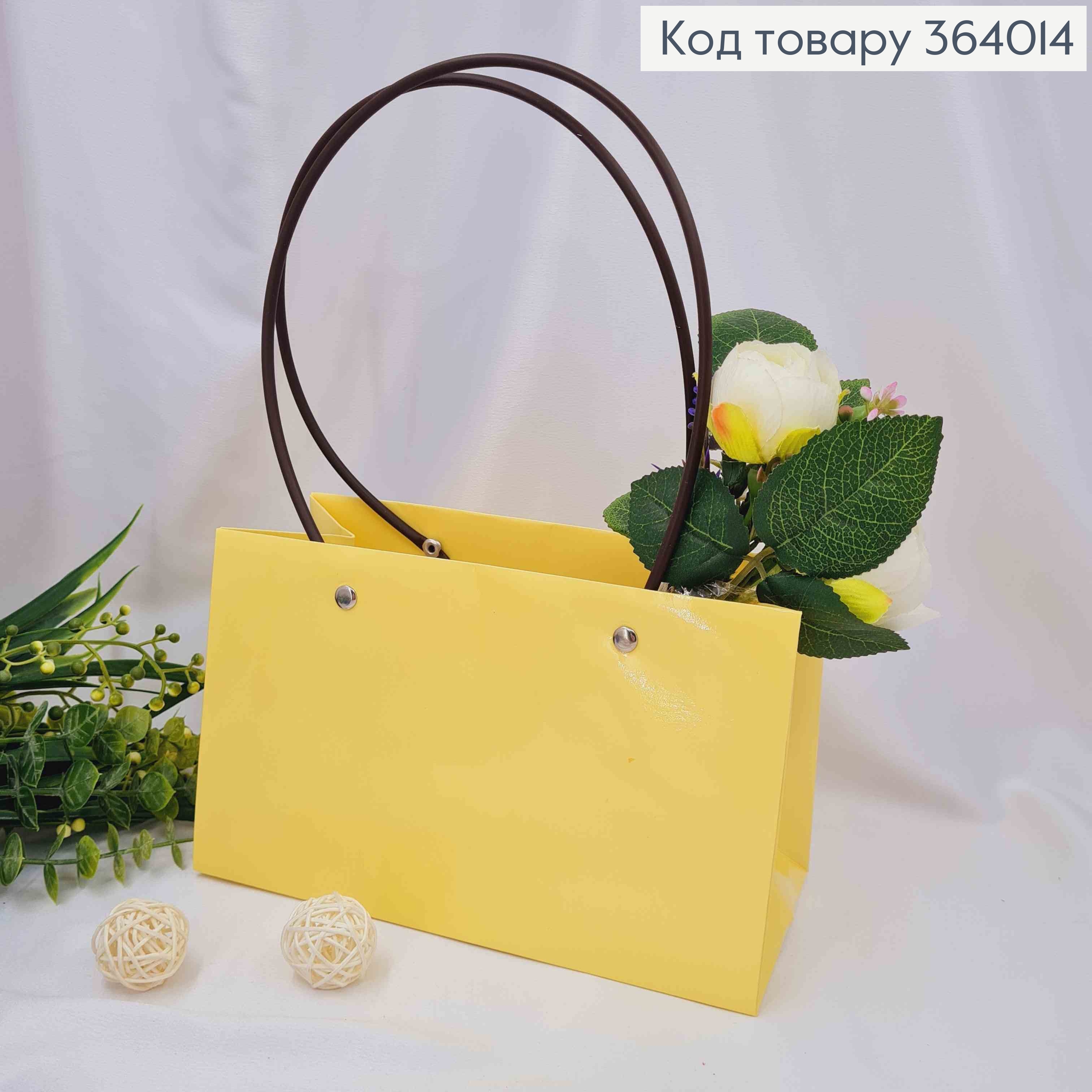 Сумочка флористическая, Желтого цвета, картонная складная, 22*11,5*37см. 364033 фото