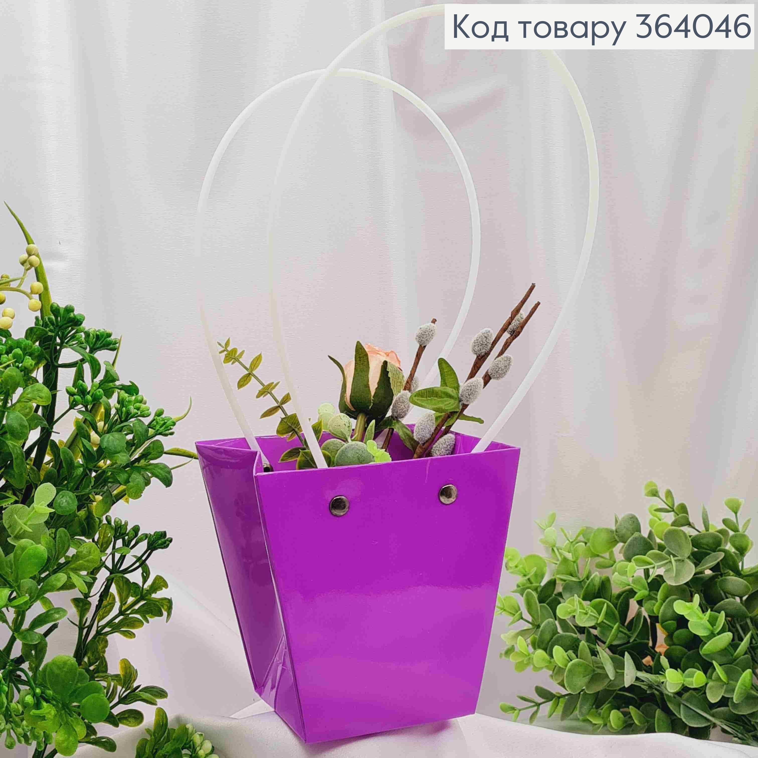 Флористическая сумочка глянцевая РОЖЕВАЯ для цветов и подарков, с пластиковыми ручками 22*11*13,5см. 364049 фото