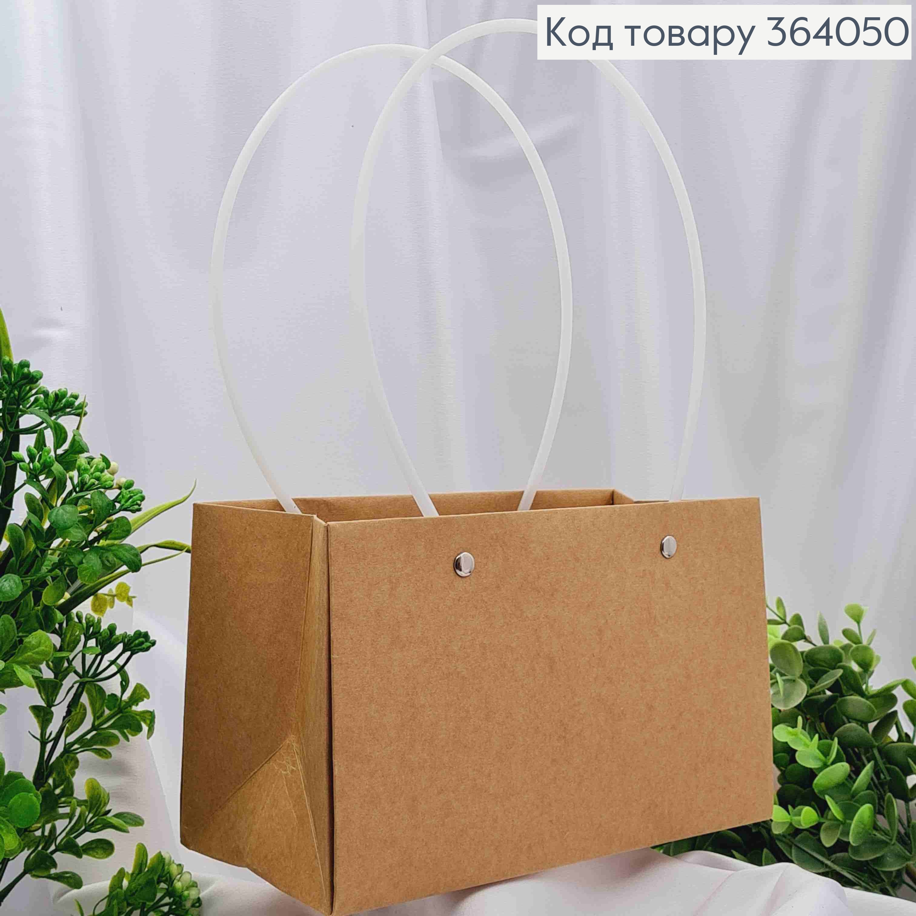 Флористическая сумочка глянцевая КРАФТОВАЯ для цветов и подарков, с пластиковыми ручками 22*11*13,5см