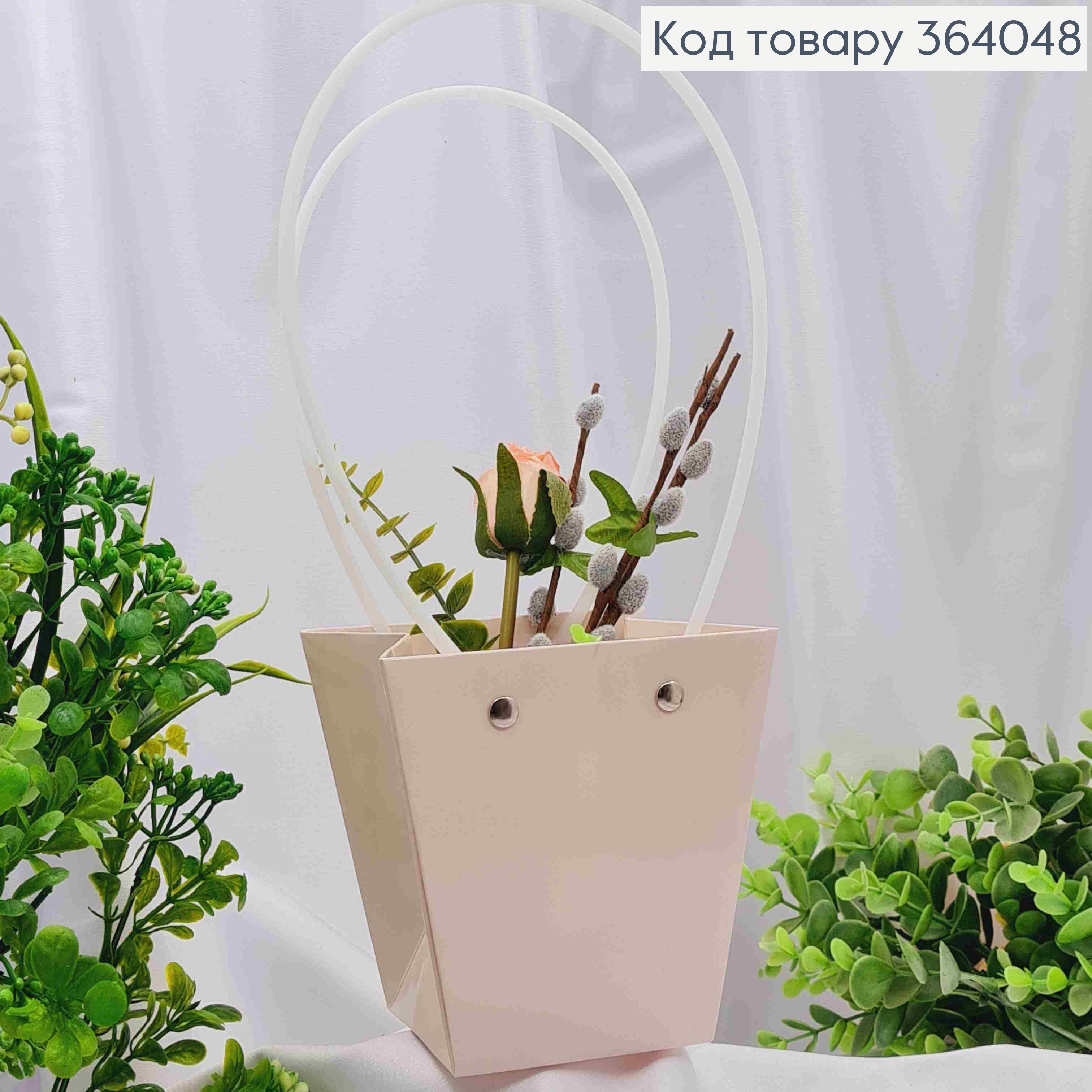 Флористическая сумочка глянцевая НЕЖНО-РОЗОВАЯ, конусная из пластик. ручками 12*12*12,5см 364047 фото