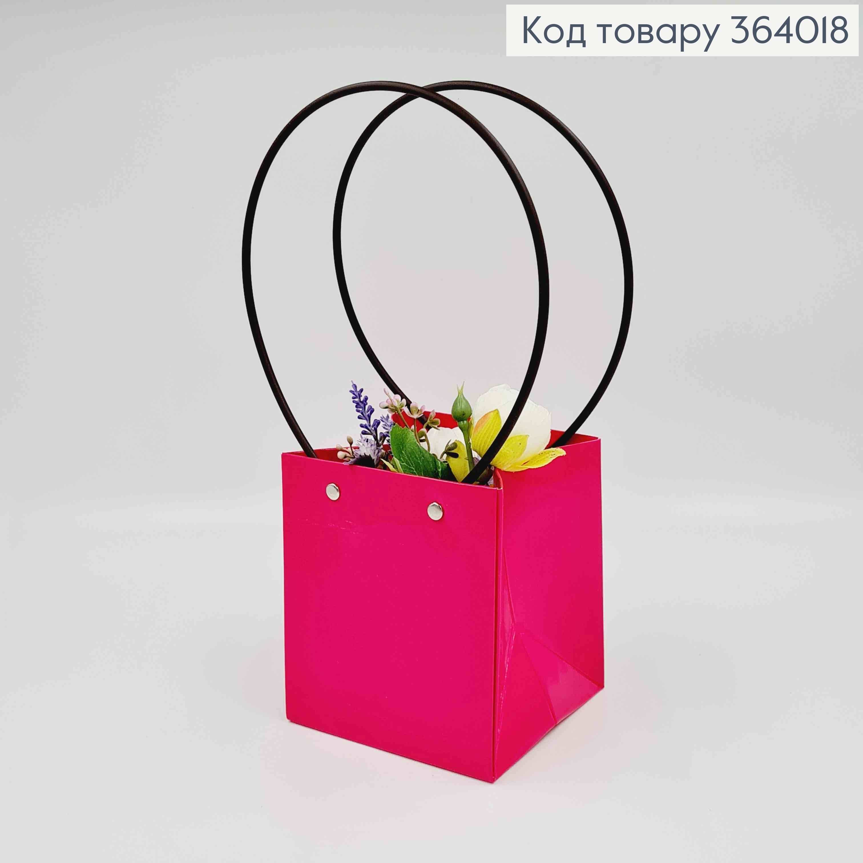 Флористическая сумочка глянцевая РОЖЕВАЯ для цветов и подарков, с пластиковыми ручками 22*11*13,5см. 364049 фото