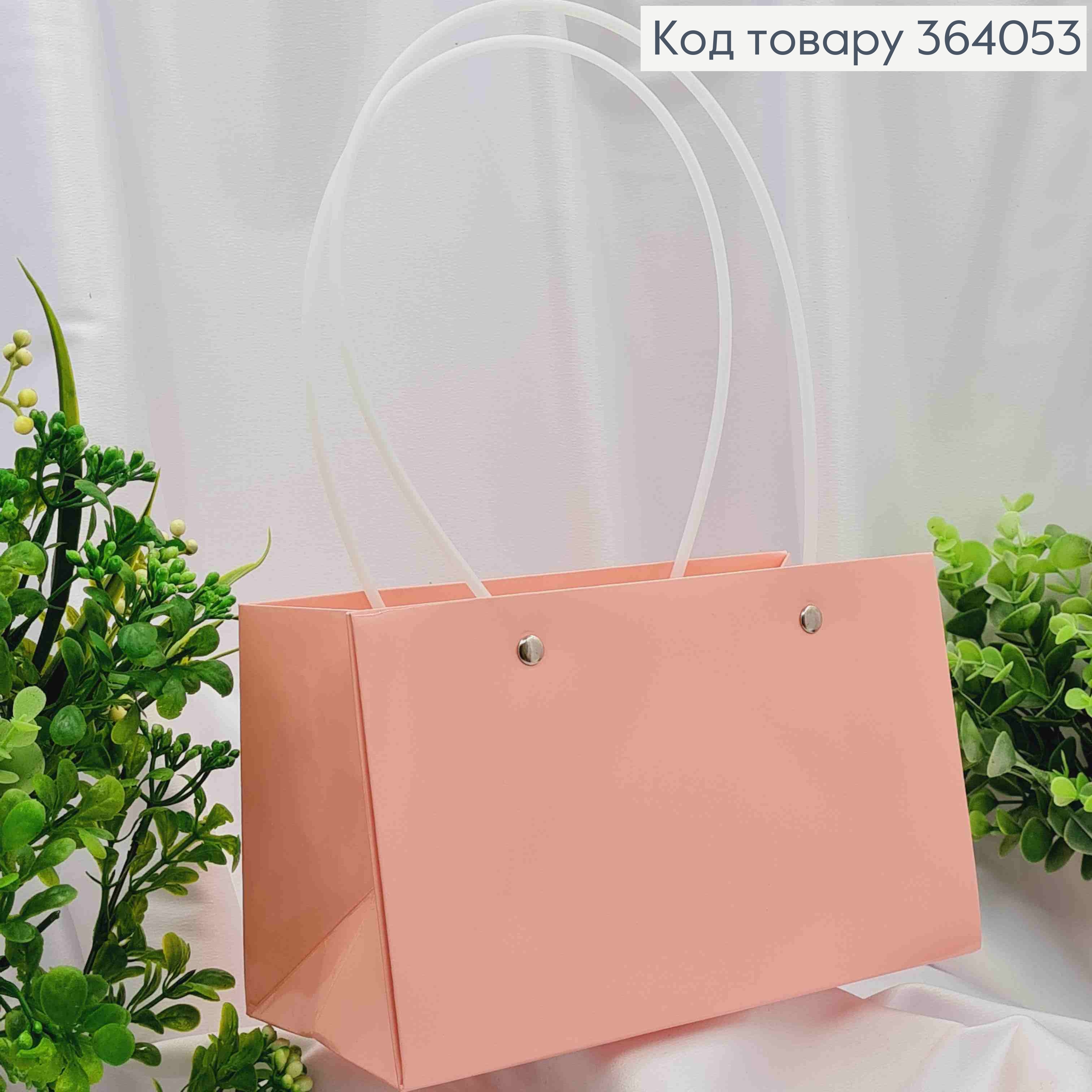 Флористическая сумочка глянцевая НЕЖНО-РОЗОВАЯ для цветов и подарков, с пластик. ручками 22*11*13,5см