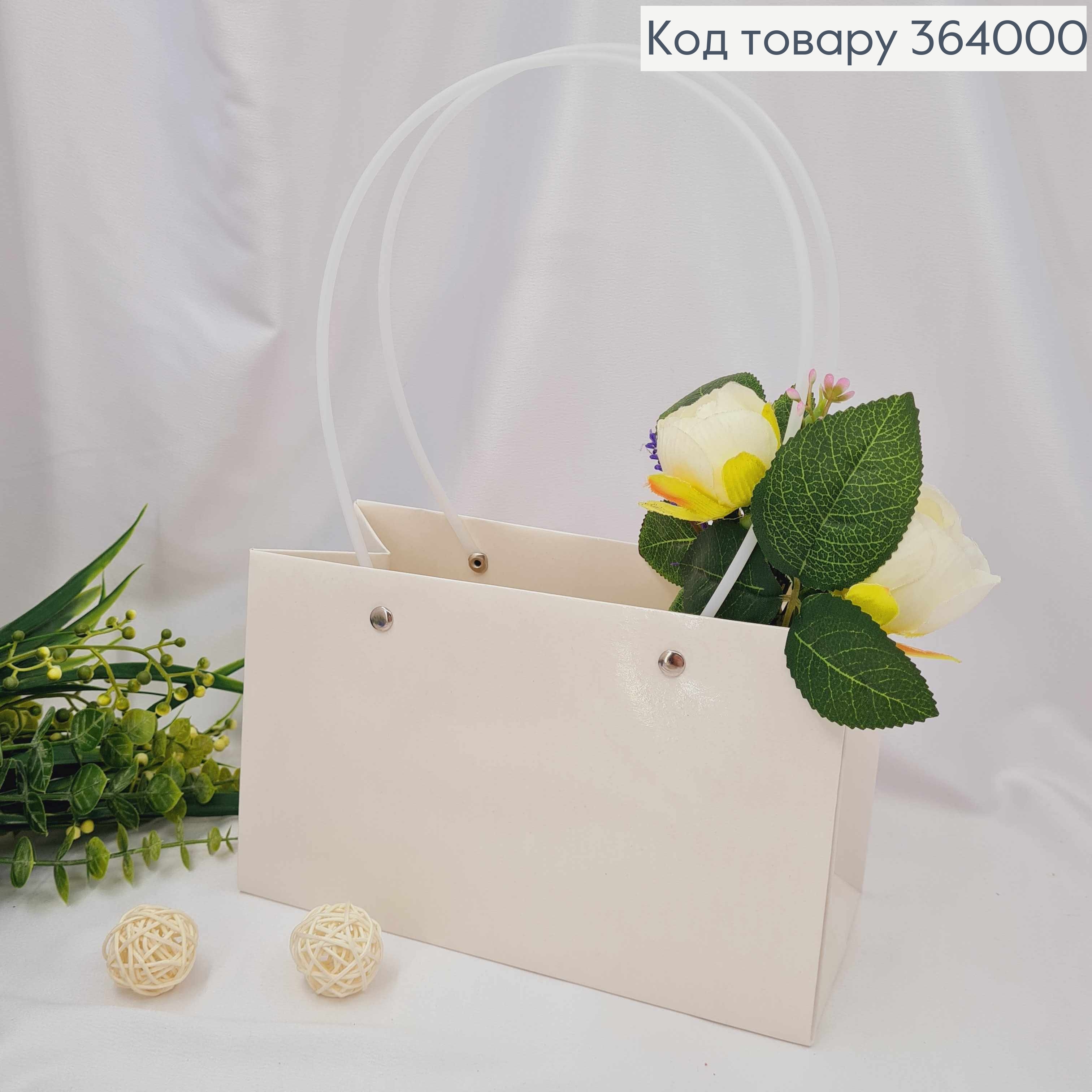 Флористическая сумочка глянцевая БЕЛАЯ, для цветов и подарков, с пластиковыми ручками 22*11*13,5см
