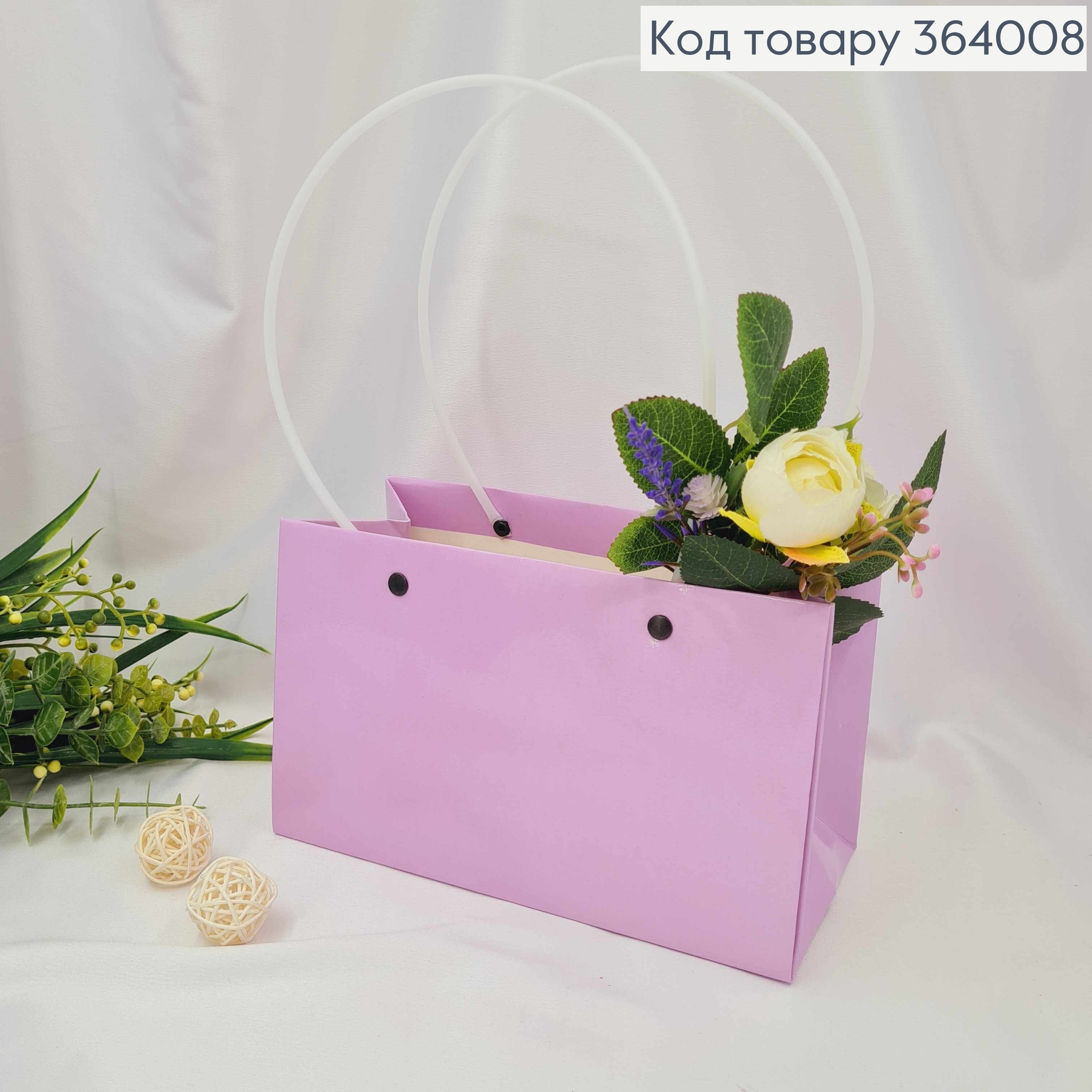 Флористическая сумочка глянцевая РОЖЕВАЯ для цветов и подарков, с пластиковыми ручками 22*11*13,5см. 364049 фото
