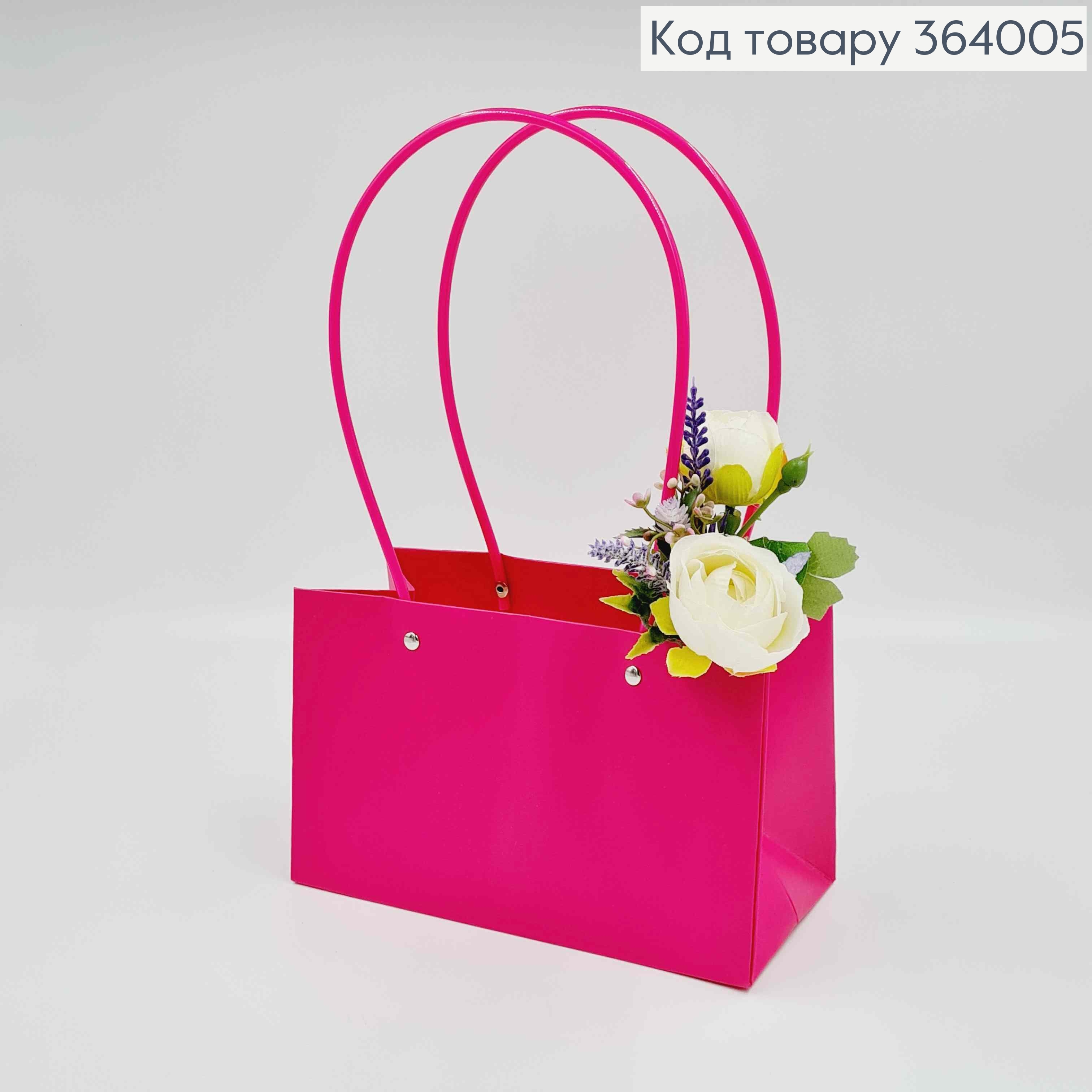 Флористическая сумочка глянцевая РОЖЕВАЯ для цветов и подарков, с пластиковыми ручками 22*11*13,5см. 364049 фото