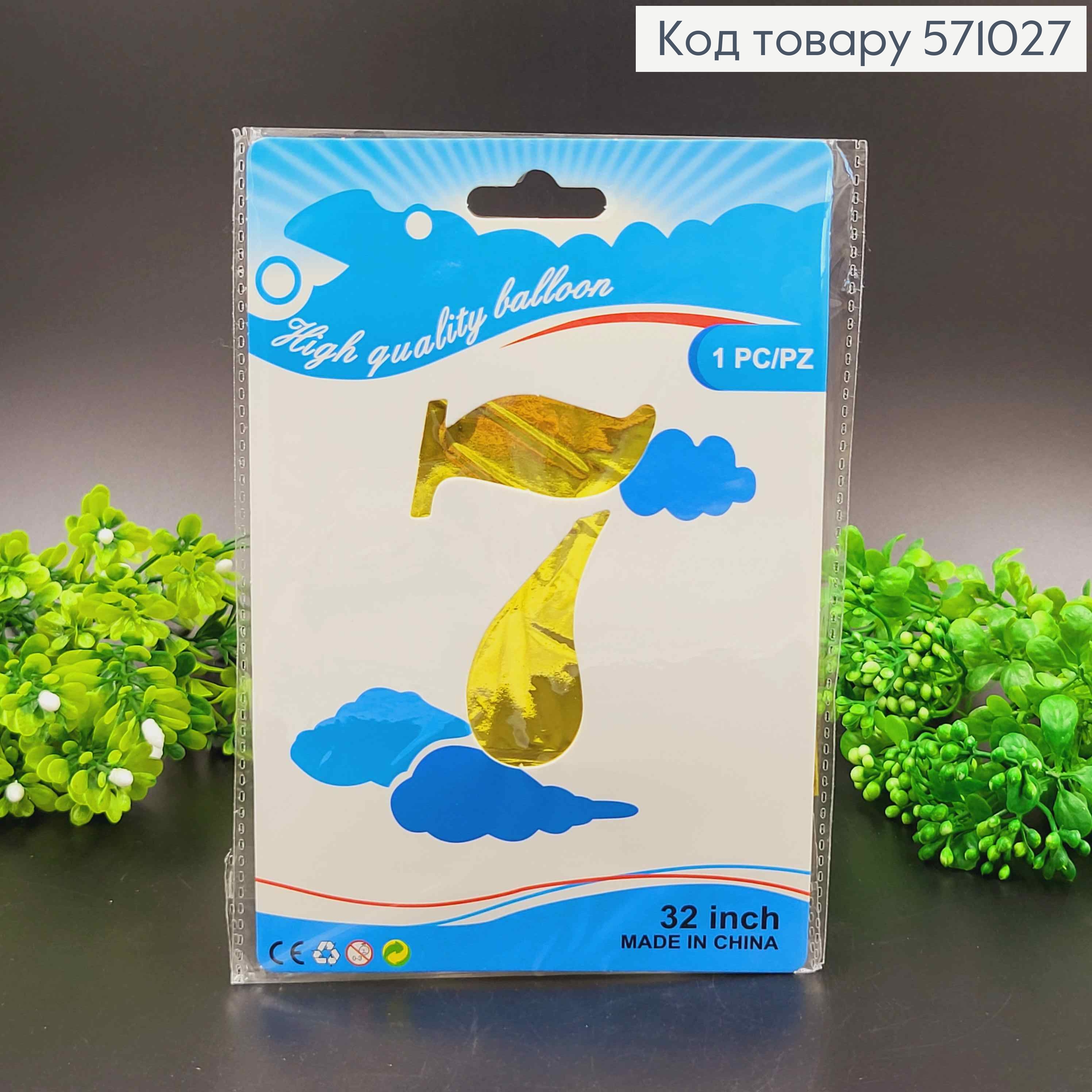 Фольгированная надувная ЦИФРА "7" золотого цвета, 32" 76см